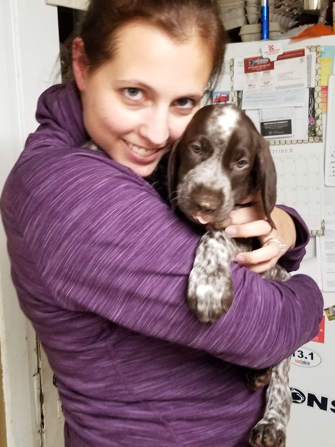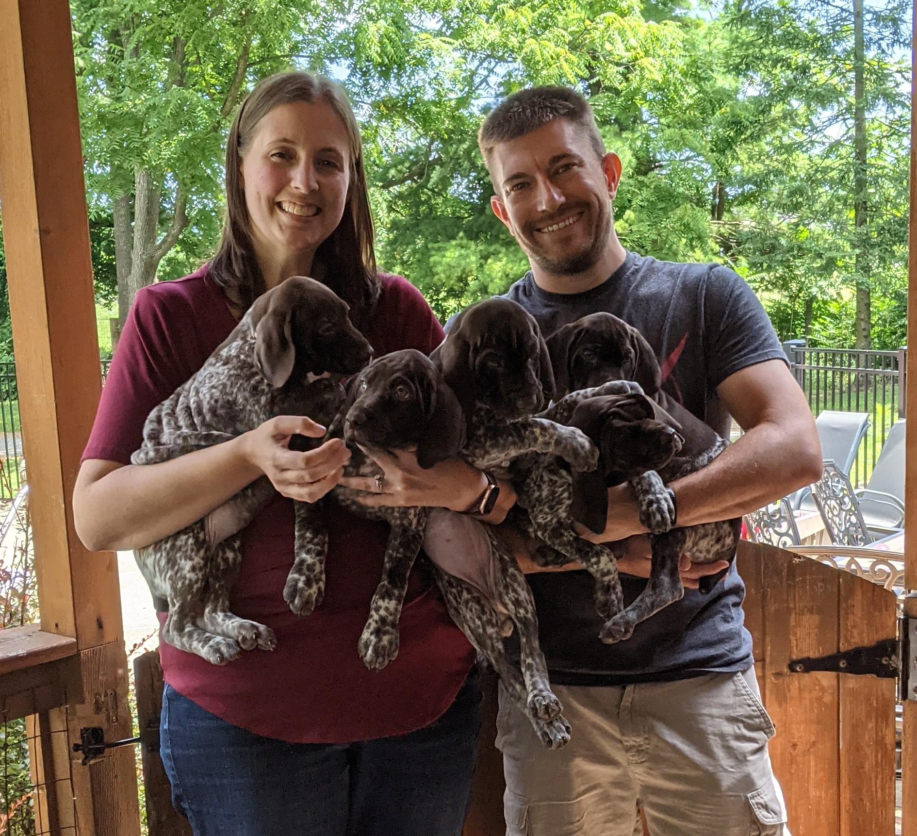 Jaimie grew up raising, breeding and showing rabbits with her Dad and sister. Both Jaimie and Derek always wanted a GSP and when we added our first GSP to our family, we decided to give this a try. We agreed to co-own and give conformation shows, hunt test and breeding our girl and the rest is history.