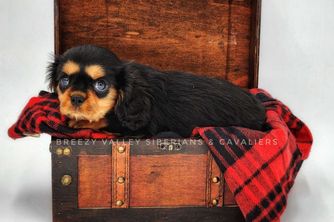 Our Cavalier King Charles Spaniel puppies include ruby and black and tan. Siberian Husky puppies include sable and white, red and white, gray and white, black and white, agouti and white, and white. Colors will vary depending on the parent dogs.