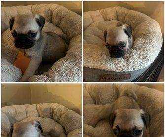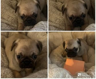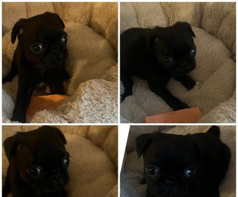 Our Boston Terrier puppies include black brindle and white and black and white. Pug puppies include black and fawn. Colors will vary depending on the parent dogs.