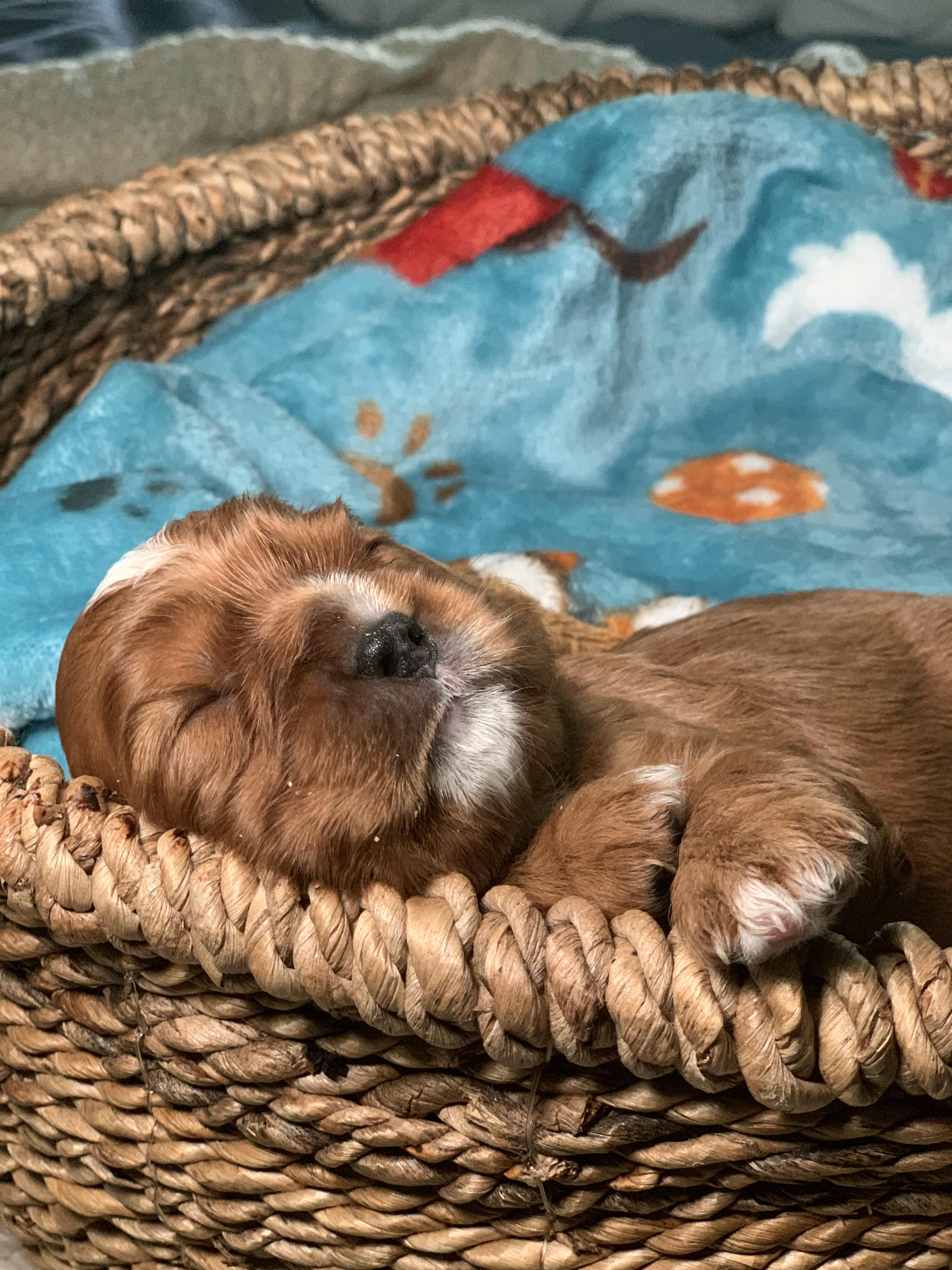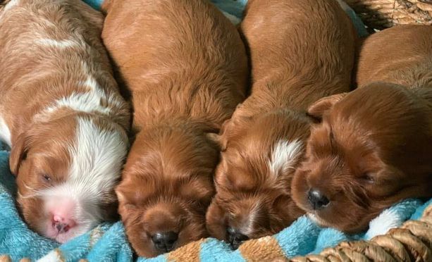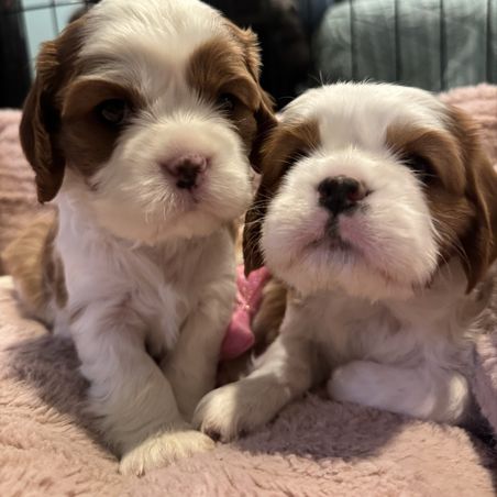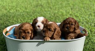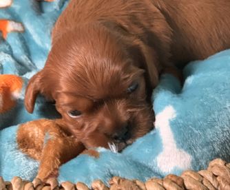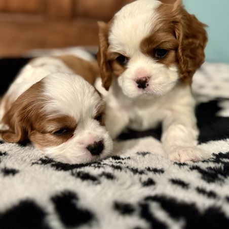 Our puppies include blenheim, ruby, tri-color, and black and tan. Colors will vary depending on the parent dogs.