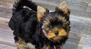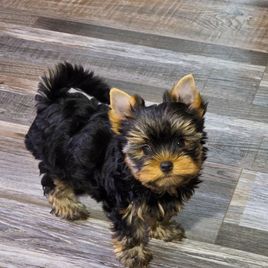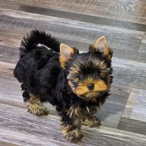 Yorkshire Terrier puppies include parti, blue and gold, and black and gold. Colors will vary depending on the parent dogs.