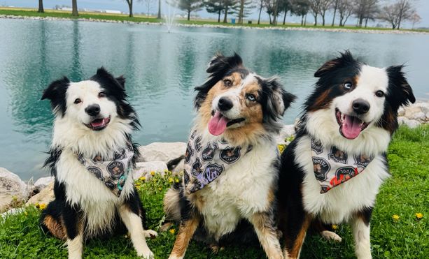 Our puppies include blue merle and black tri. Colors will vary depending on the parent dogs.