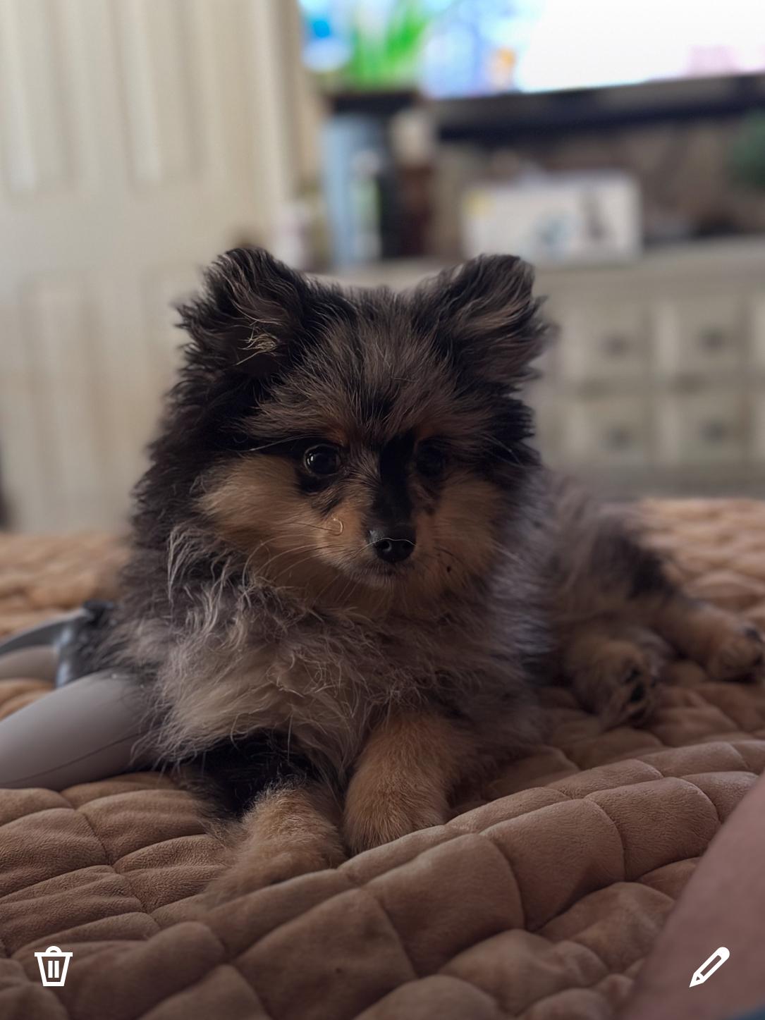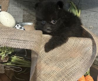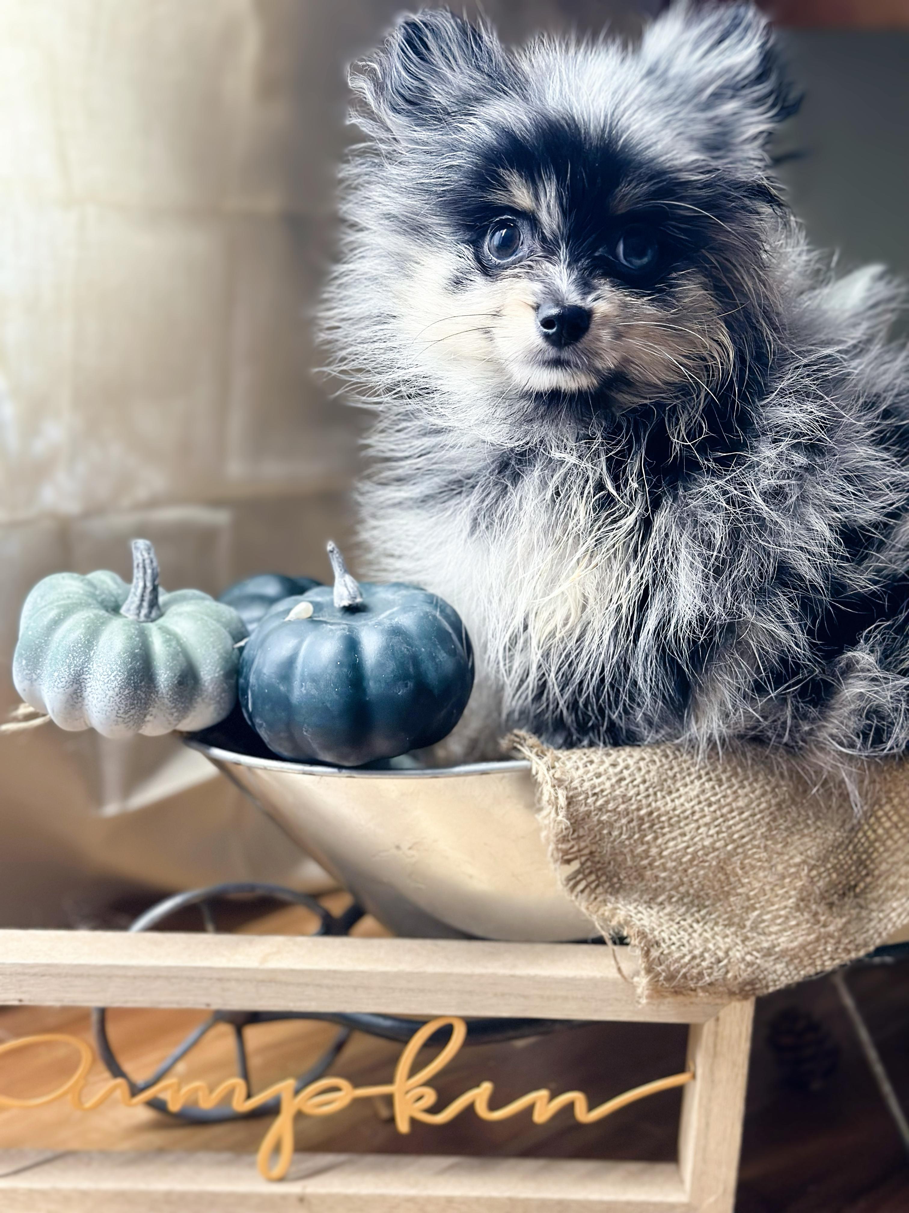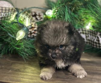 Our Pomeranian puppies include cream, blue, tri-colored, chocolate and tan, black and tan, and blue merle. Colors will vary depending on the parent dogs.