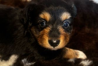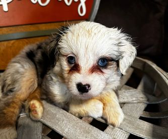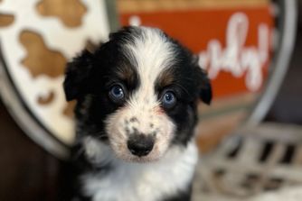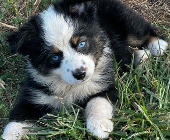 Our Miniature Australian Shepherd puppies include blue merle and black tri. Toy Australian Shepherd puppies include red, black tri, blue merle, and red merle. Companion Cross puppies include fawn, black and tan, and black. Colors will vary depending on the parent dogs.