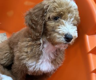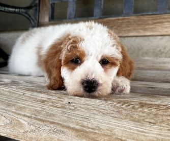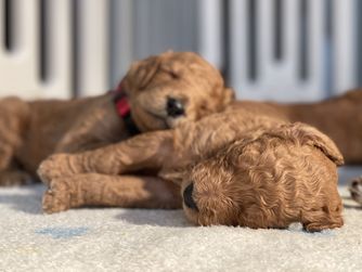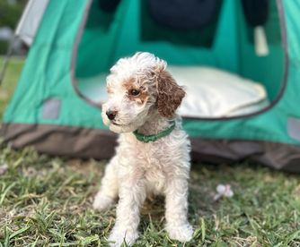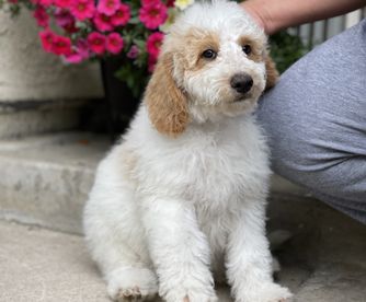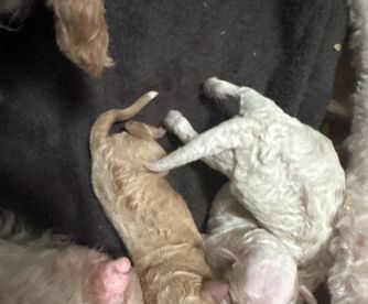 Our Goldendoodle puppies include cream, apricot, red, and parti. Poodle puppies include cream, red, white, and parti. Colors will vary depending on the parent dogs.
