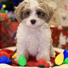 Our Cavapoo puppies include tri-color, sable, blenheim, and black and white. Poodle puppies include apricot, black, parti, phantom, and brindle. Colors will vary depending on the parent dogs.