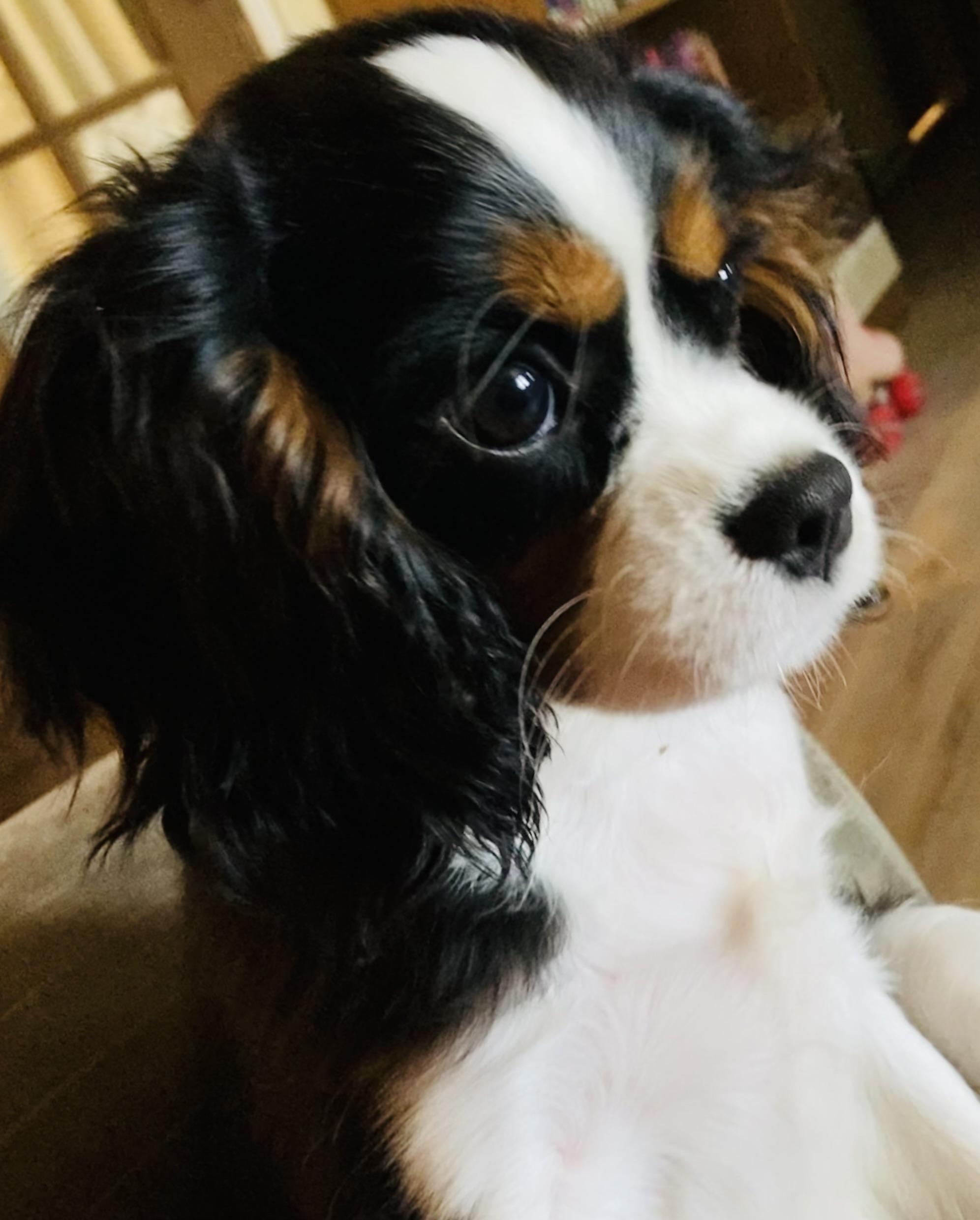 Mabel is an AKC registered Cavalier King Charles Spaniel so her puppies will be F1 Cavapoos. She is playful sweet and a born leader. She is epitome of a Velcro Dog. Sticks by my side at all times. She loves people and catches on to new tricks very quickly.