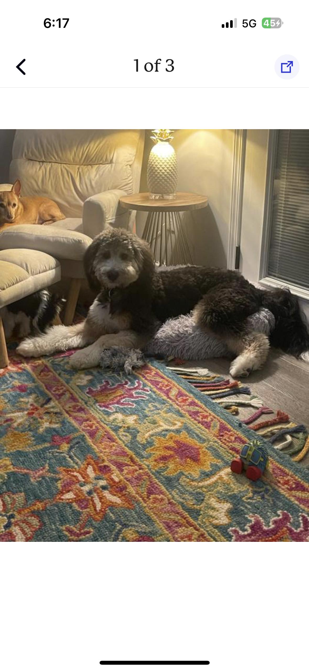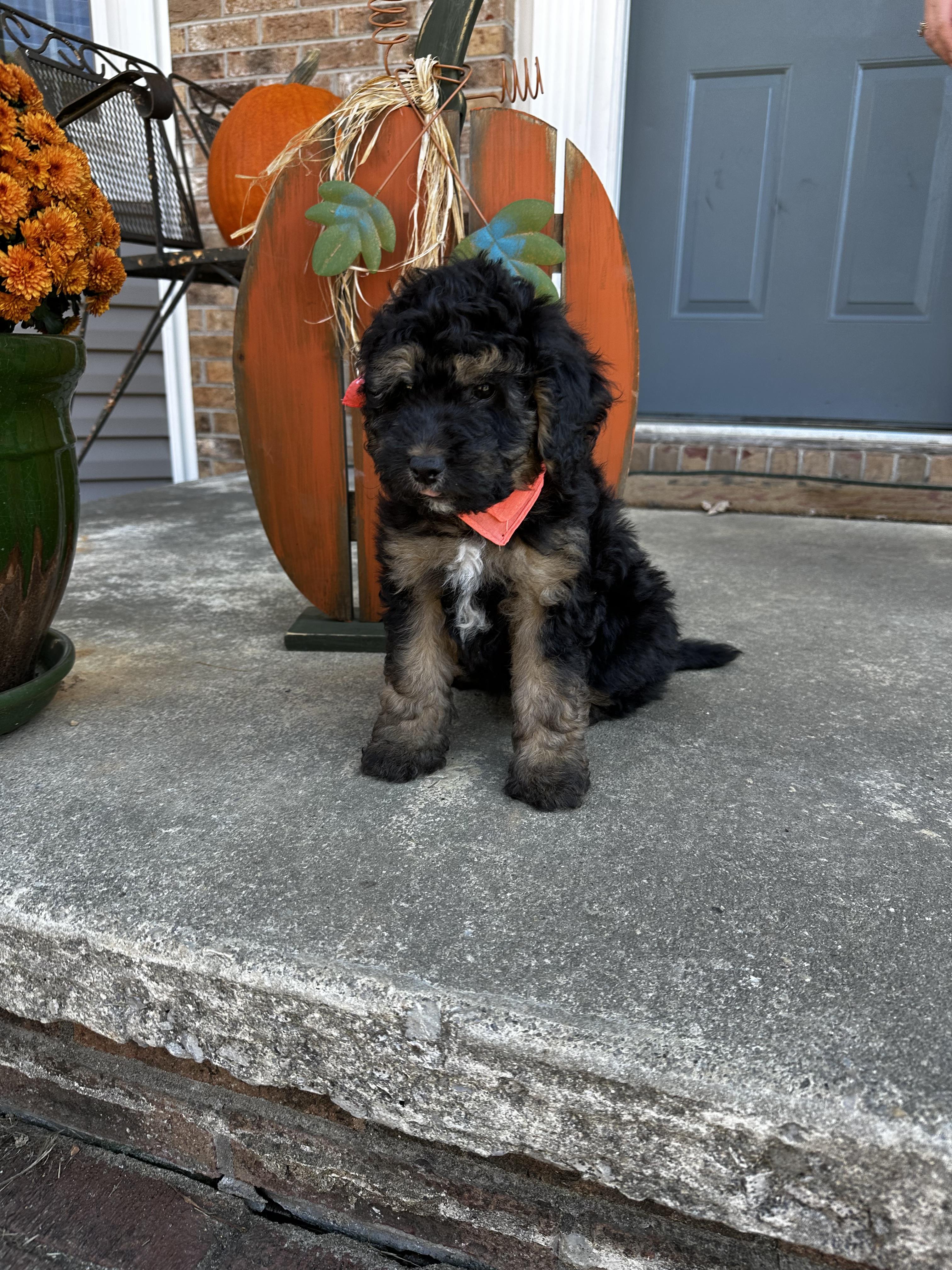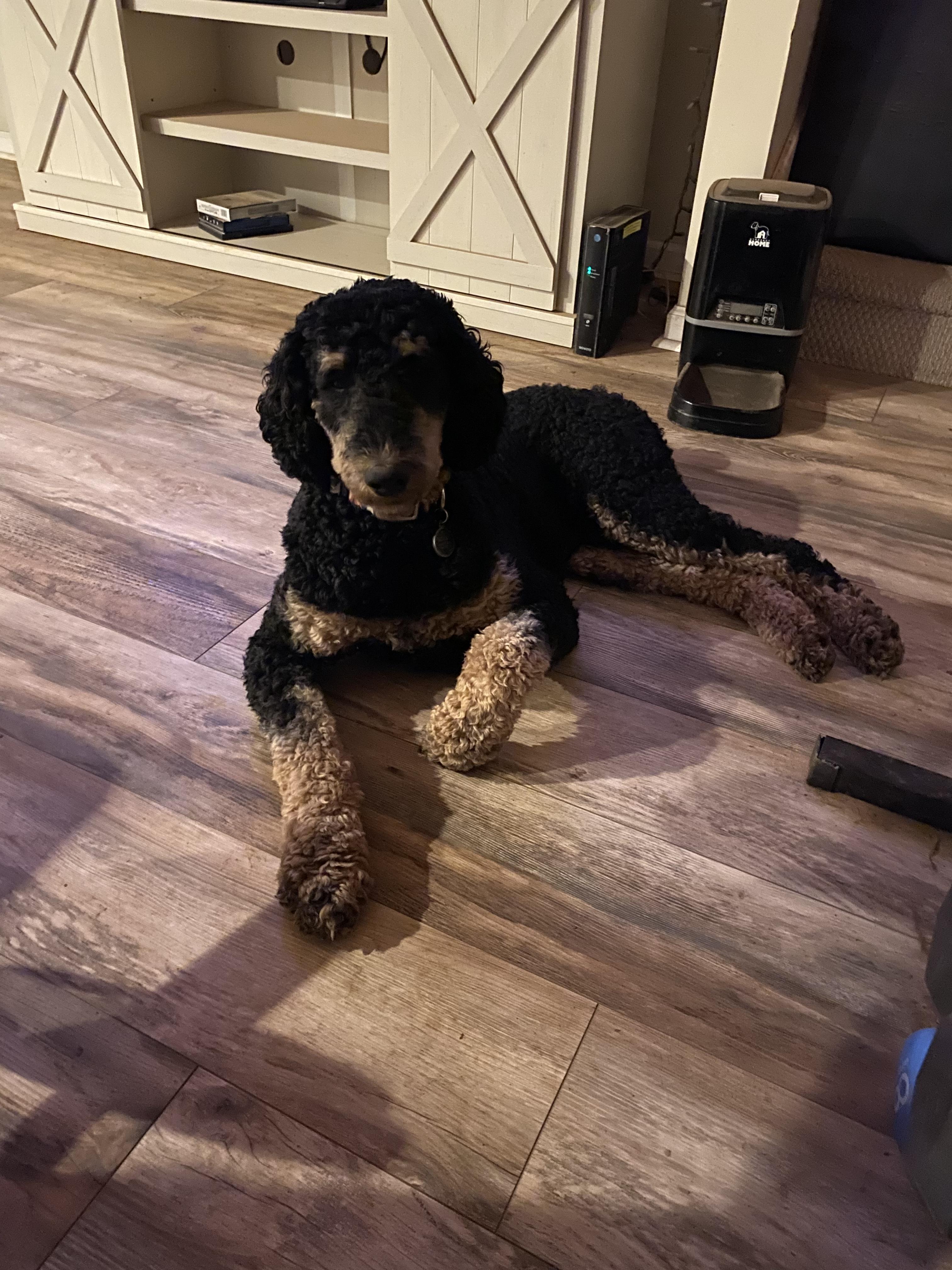“Goldendoodle $1350 Poodles $1500-$3500 pet only Solid standard bernedoodle $1800, bi-color $2000, phantom $2200, merle $2300 tricolor $2400 merle tricolor $2600 Mini bernedoodle $2500 black and white. $2700 phantom color $3000- for tri color. Non-refundable but can be transferred to another litter.”