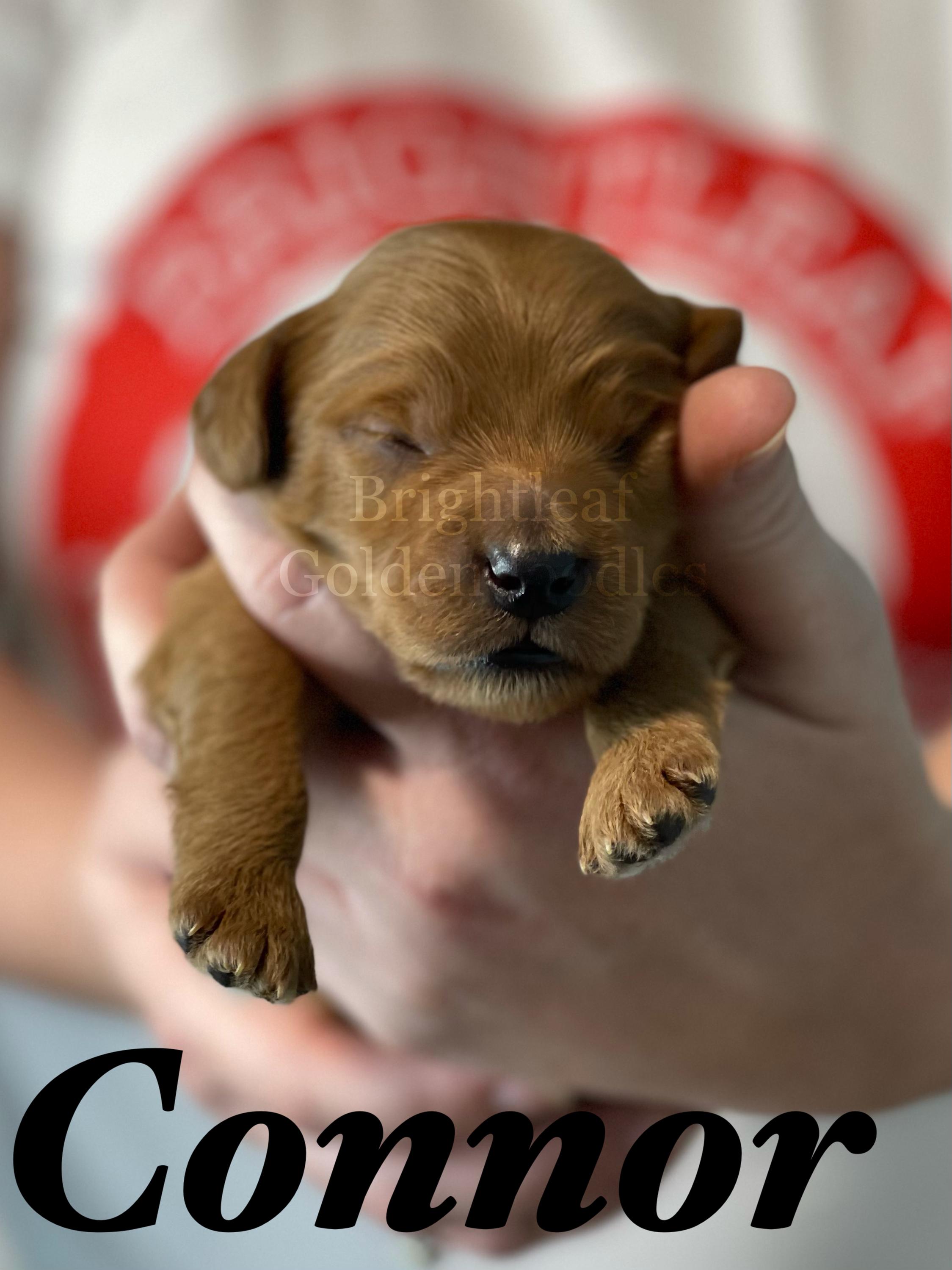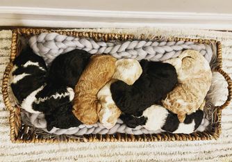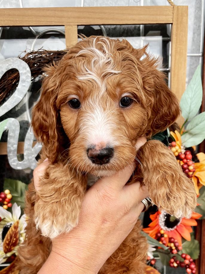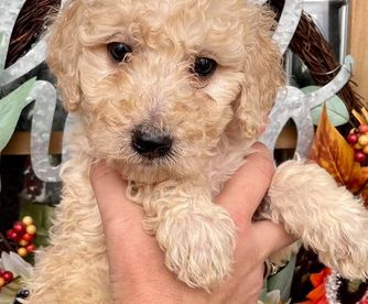 Our Goldendoodle puppies include cream, apricot, red, black, and phantom. Colors will vary depending on the parent dogs.