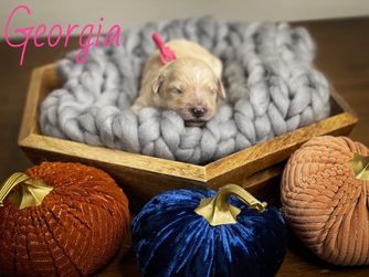 Having had dogs all of her life, Devin started dog sitting 6 years ago. She was fourtunate enough to have a few Goldendoodle guest dogs and fell in love with the happy fun loving and just downright cute Goldendoodle breed. After bringing her first Goldendoodle home and researching what it takes to be a truly exceptional breeder she decided that breeding was the way to go. Breeding Goldendoodles is a passion for Devin and she looks forward to sharing the happiness and love that a Goldendoodle can bring to her puppy buyers.