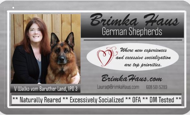 I'm Laura, the breeder behind Brimka Haus German Shepherds located in Stoughton, WI. Since 1994, we have been using a combination of selective breeding & rigorous health screenings to ensure the health & well-being of our dogs. Our puppies are raised in a loving home environment, & puppy buyers can rest assured knowing they are receiving a confident and balanced puppy.