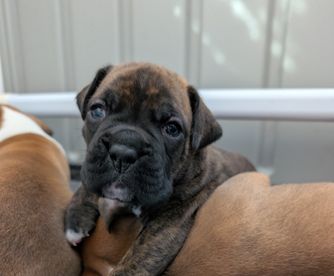 Our puppies include fawn and brindle. Colors will vary depending on the parent dogs.
