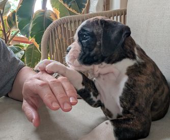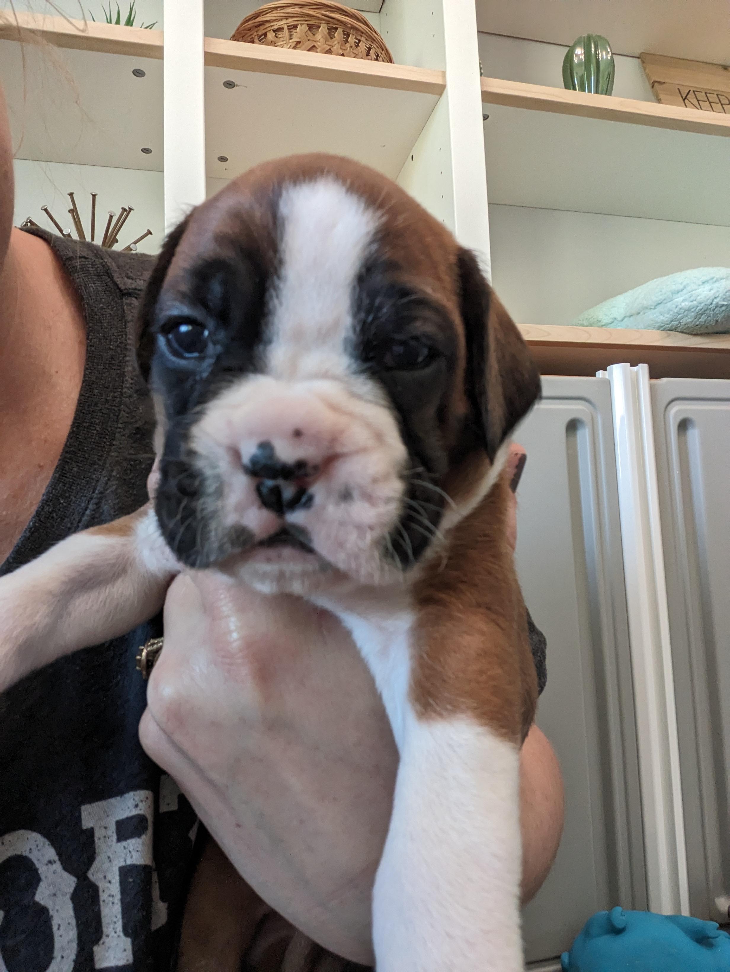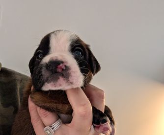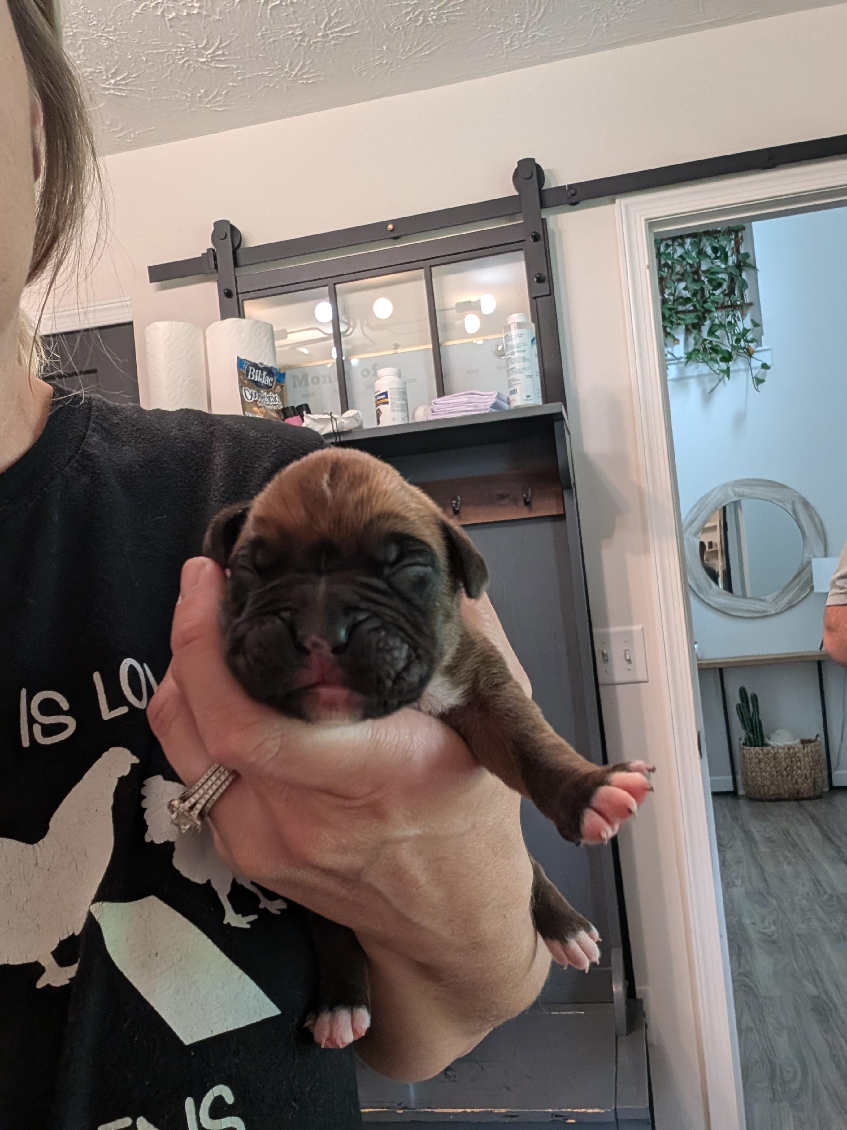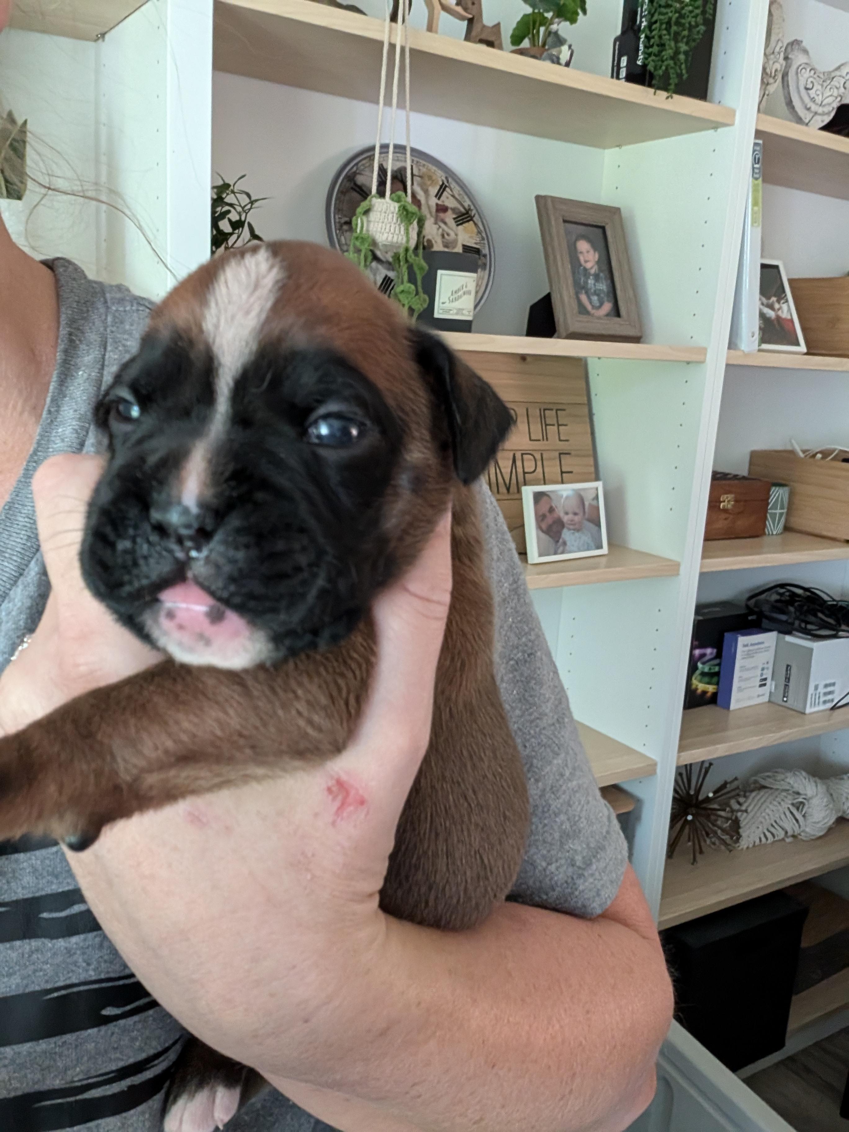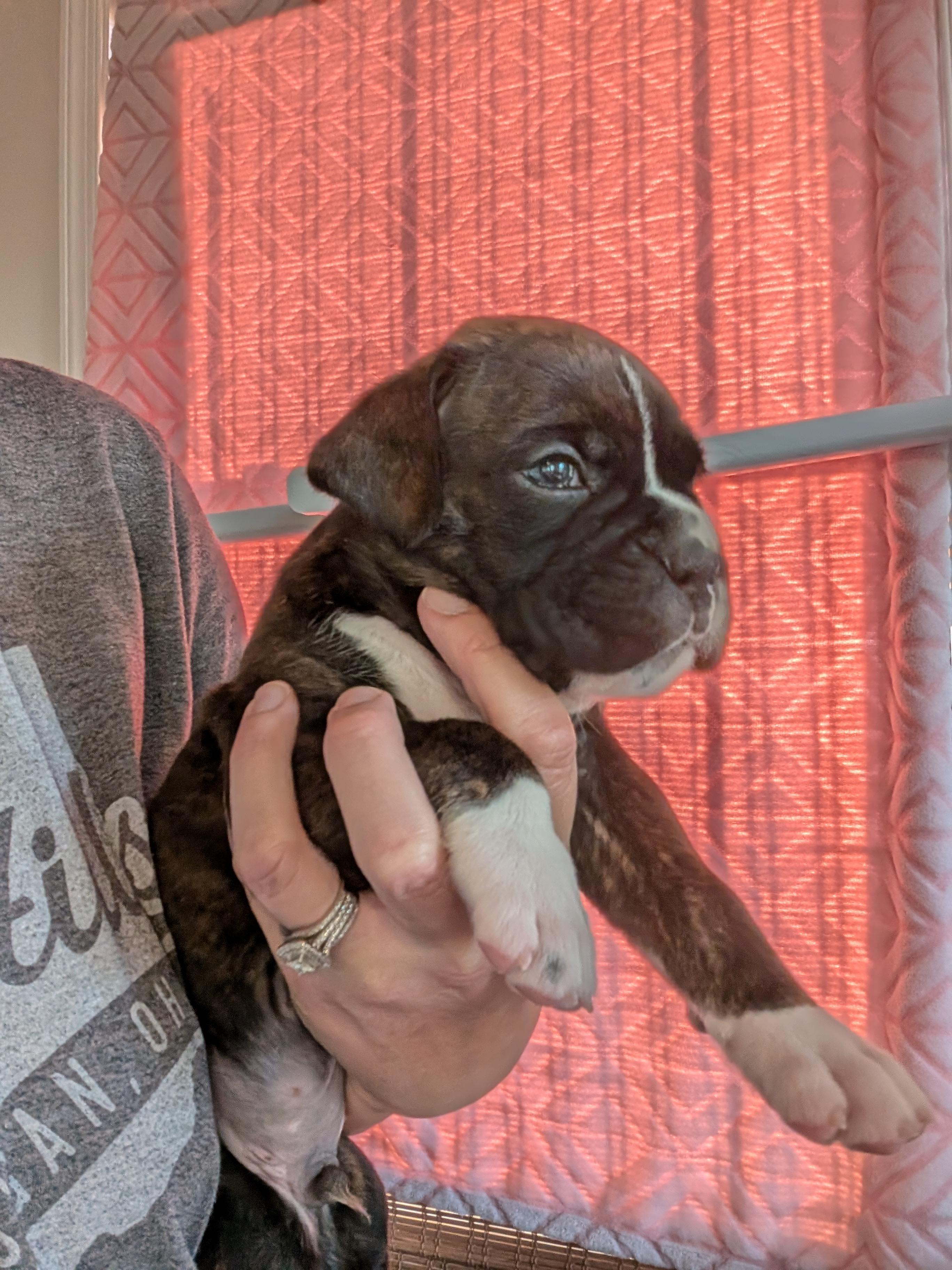 I'm Shelly B., the breeder behind Brinkhaven Boxers located in Wellington, OH. Our goal is to provide families with healthy, well socialized companions. Our puppies are handled daily from day one. Our dogs live in our home, have a spot on the couch, and have a place in our hearts forever!