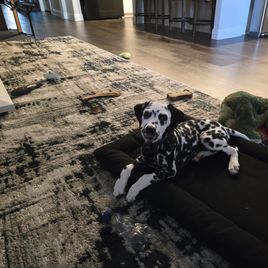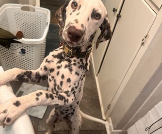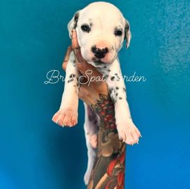Peter is a male Dalmatian. Carefully selected as a great representative of his breed, Bri decided to make him part of their program. Bri has passed Good Dog’s screening process, which involved a review of their breeding practices, environment, and the mental and physical health of their dogs.