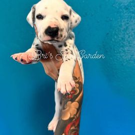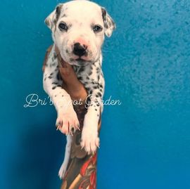 Ruby is a female Dalmatian. Carefully selected as a great representative of her breed, Bri decided to make her part of their program. Bri has passed Good Dog’s screening process, which involved a review of their breeding practices, environment, and the mental and physical health of their dogs.