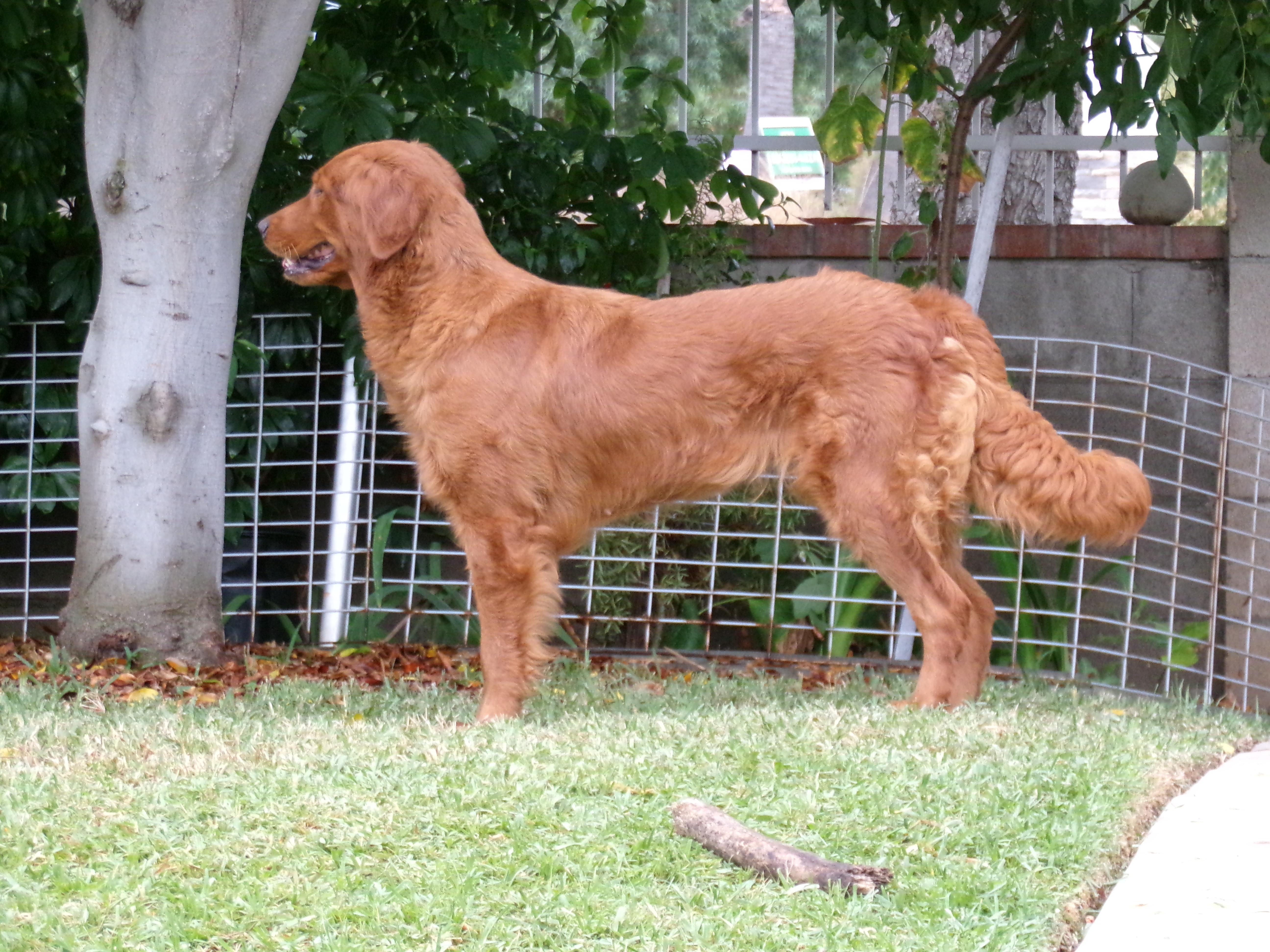 Gala was paired with Doc for red pups. She is sweet as can be and loves to please us. She also loves to play fetch and will give her aunts Ruby and Kleo a bit of competition but surrenders in the end. She is AKC, DNA genetically clear, OFA completed for heart, OFA hips/elbows. Our pups are given Early Neurological Stimulation & Early Scent Introduction training.