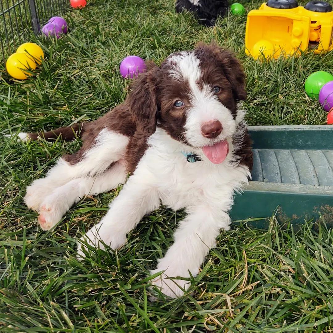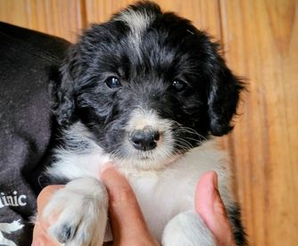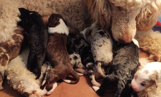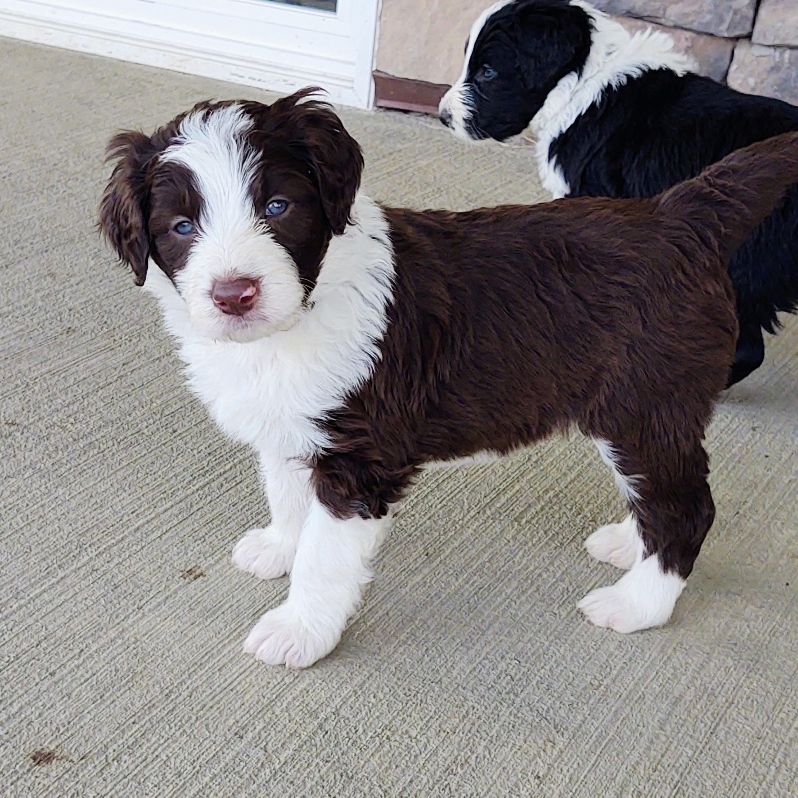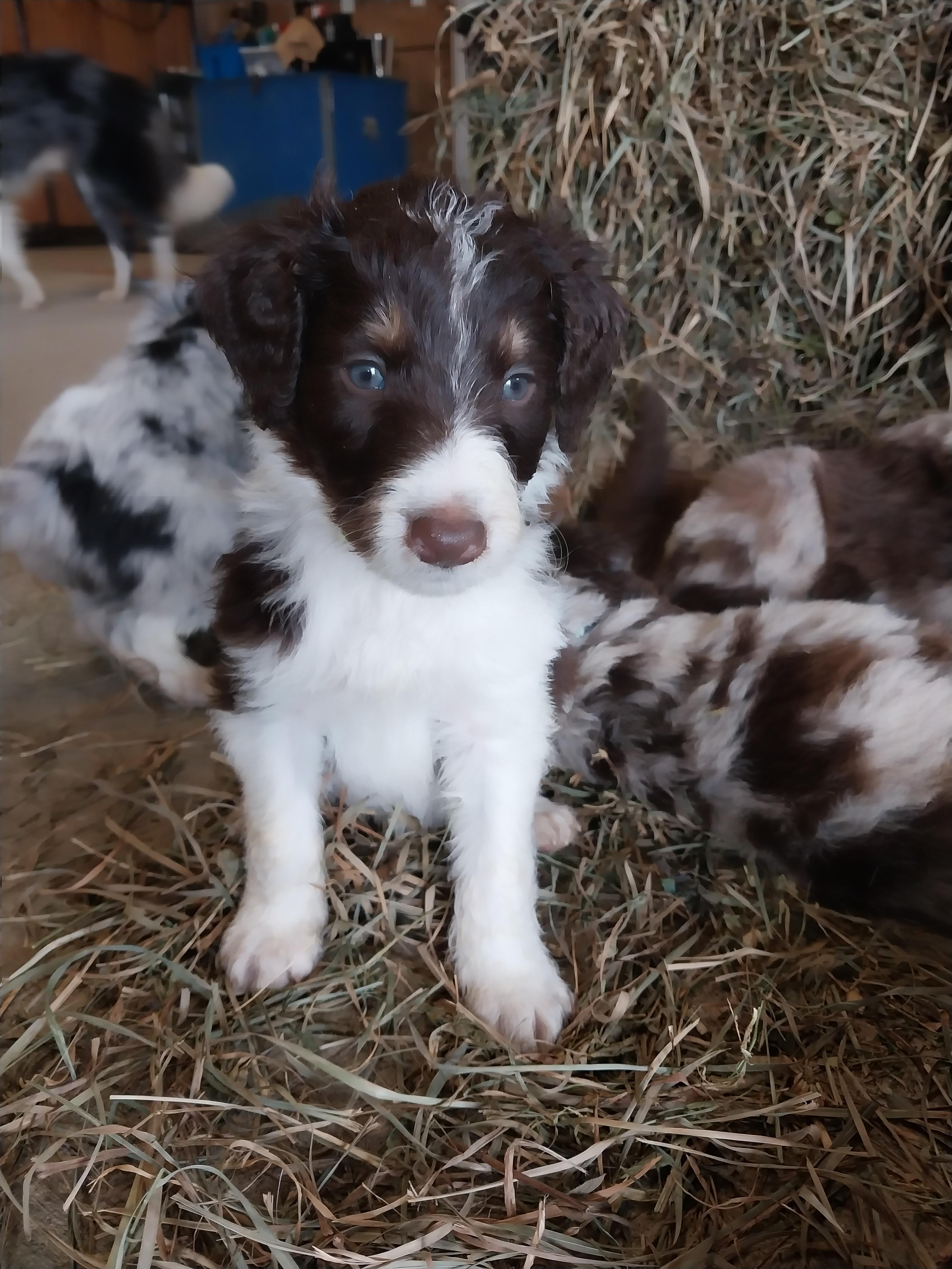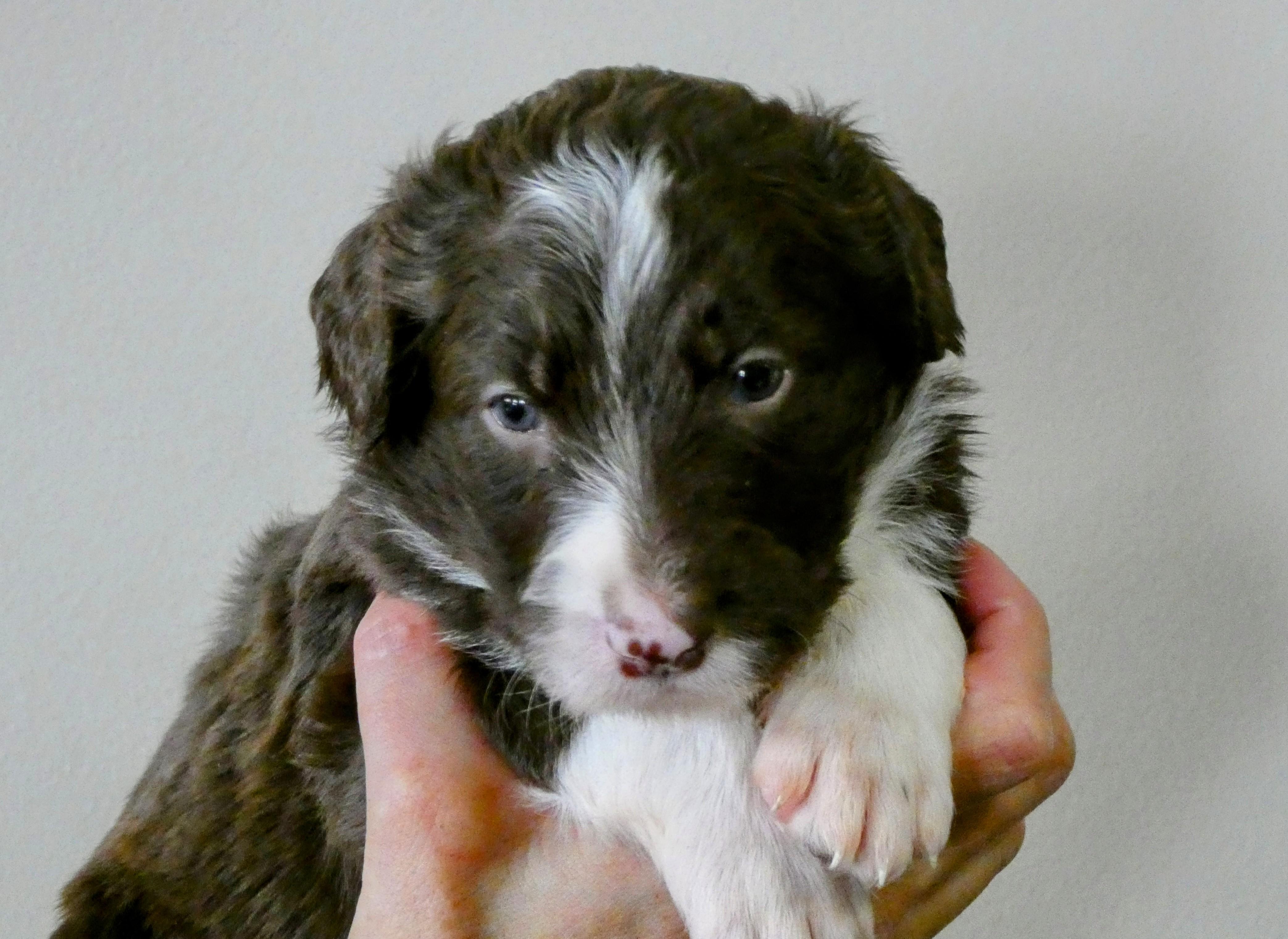 Having owned poodles in the past, I fell in love with this smart, dedicated and intensely affectionate breed, then add the superb intelligence, loyalty and work ethic of the Border Collie and it was a "no brainer". Their puppies have been amazing! Our adults were hand chosen for their intelligence, sweet dispositions and beauty, along with their great health and pedigrees.
