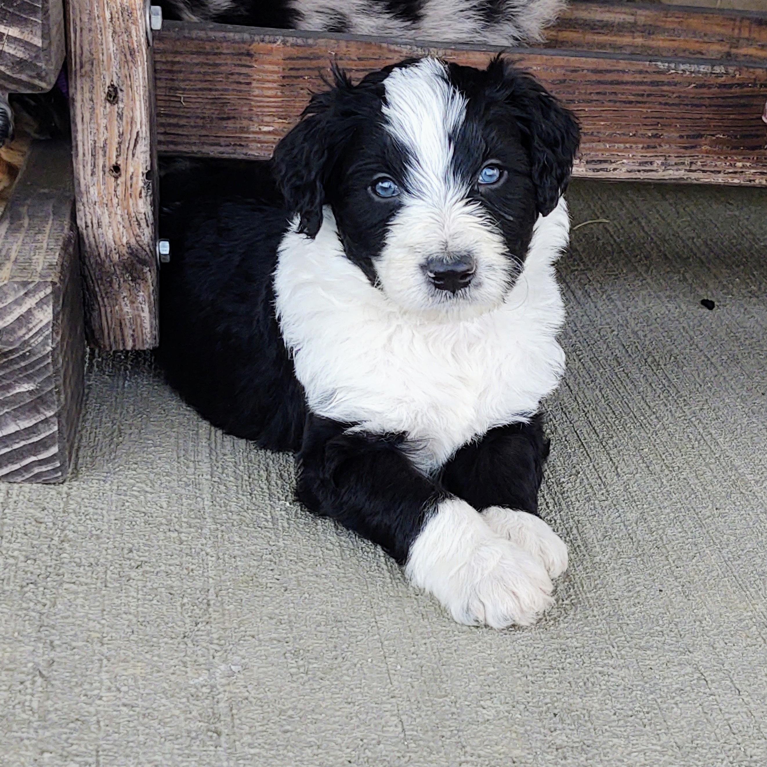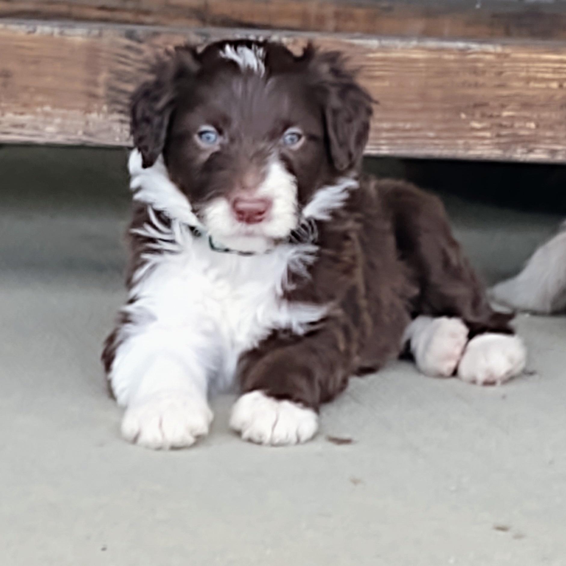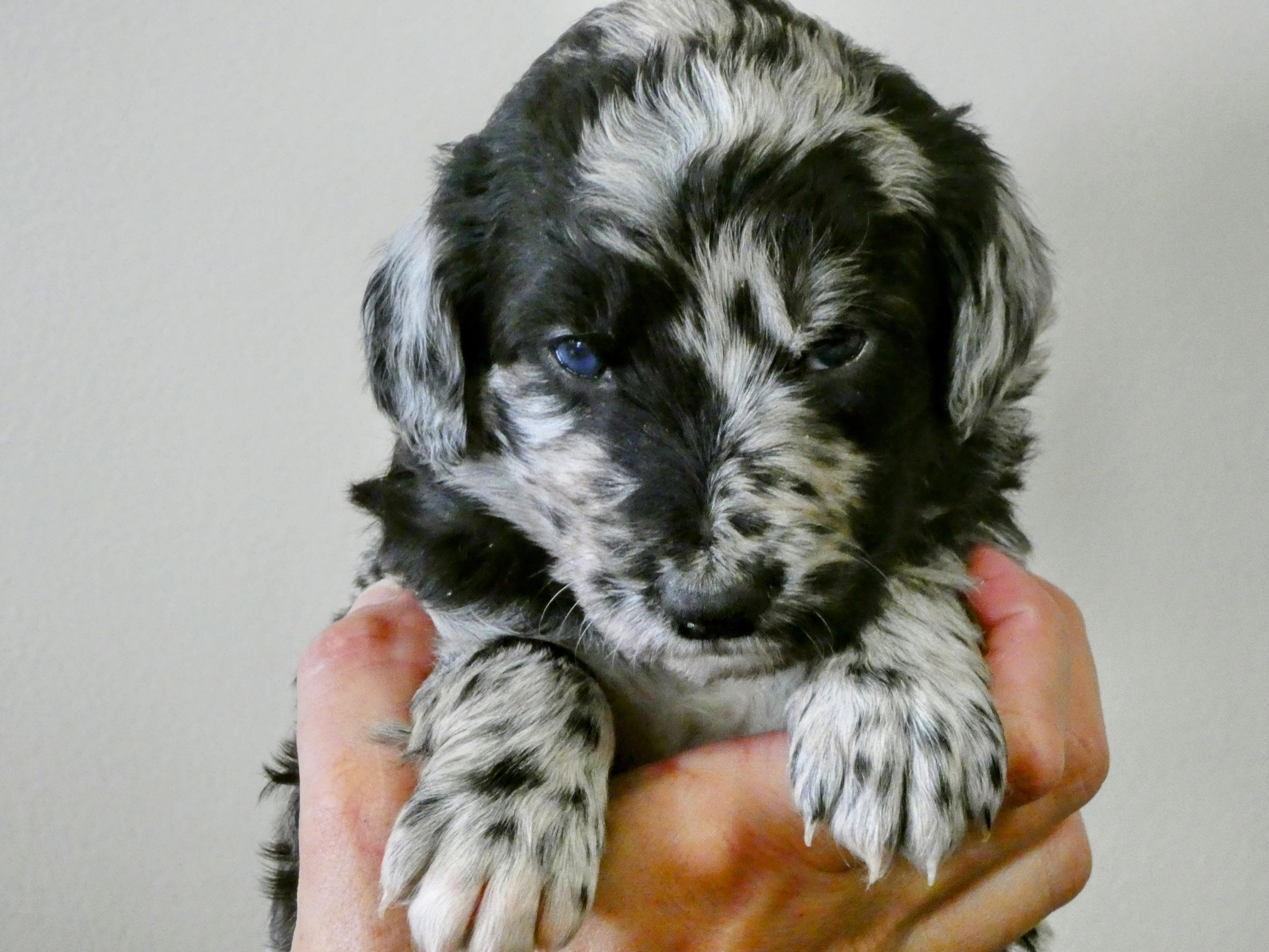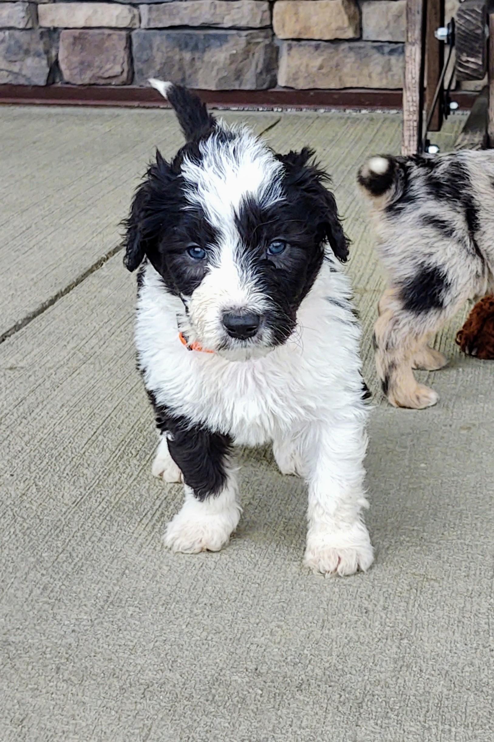 Having owned poodles in the past, I fell in love with this smart, dedicated and intensely affectionate breed, then add the superb intelligence, loyalty and work ethic of the Border Collie and it was a "no brainer". Their puppies have been amazing! Our adults were hand chosen for their intelligence, sweet dispositions and beauty, along with their great health and pedigrees.