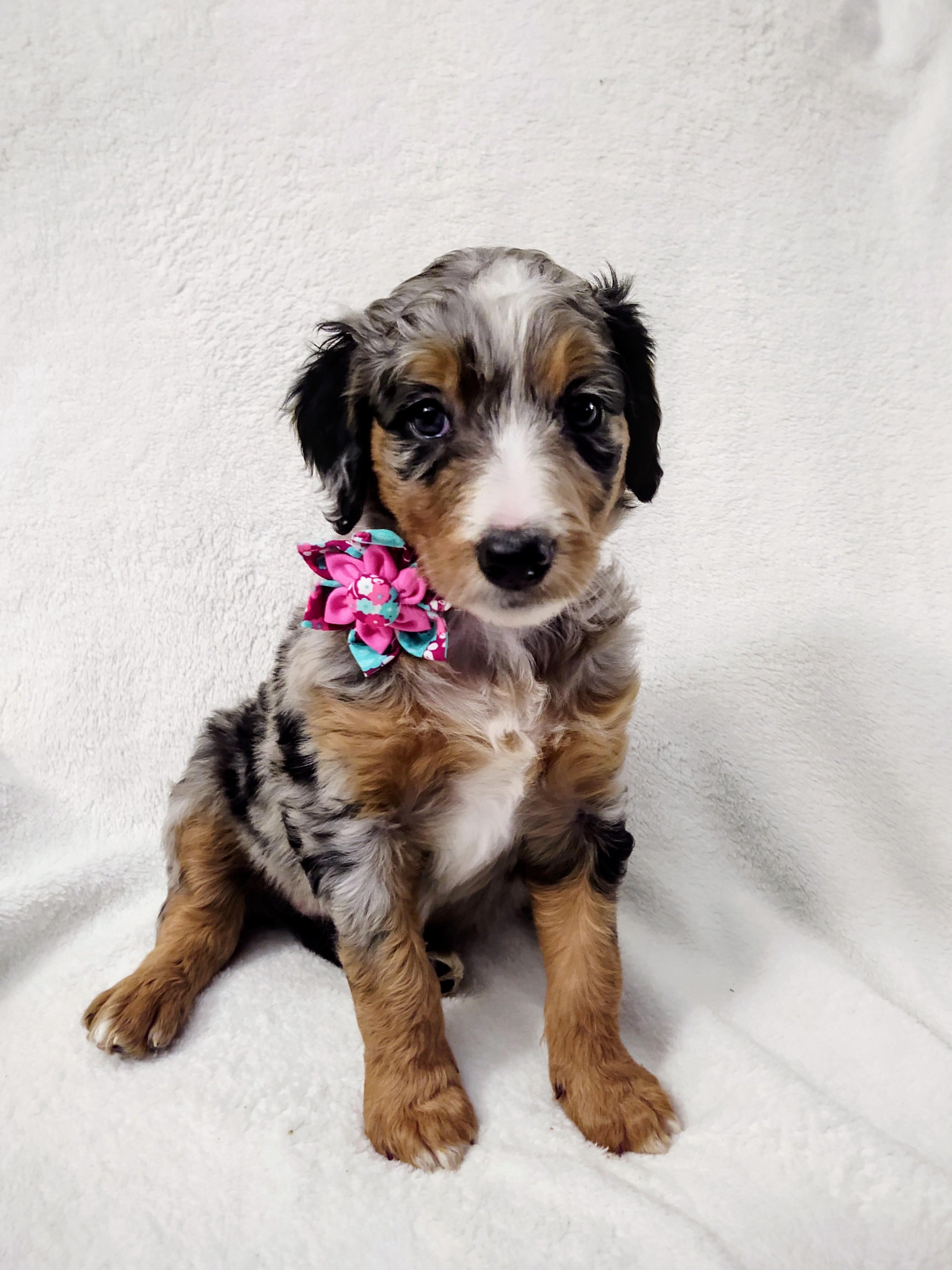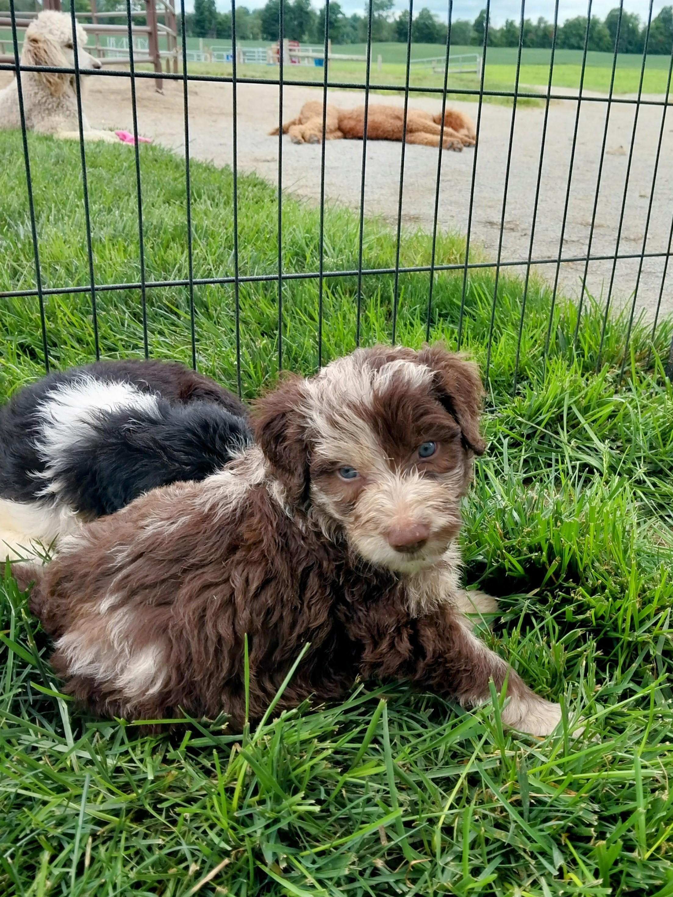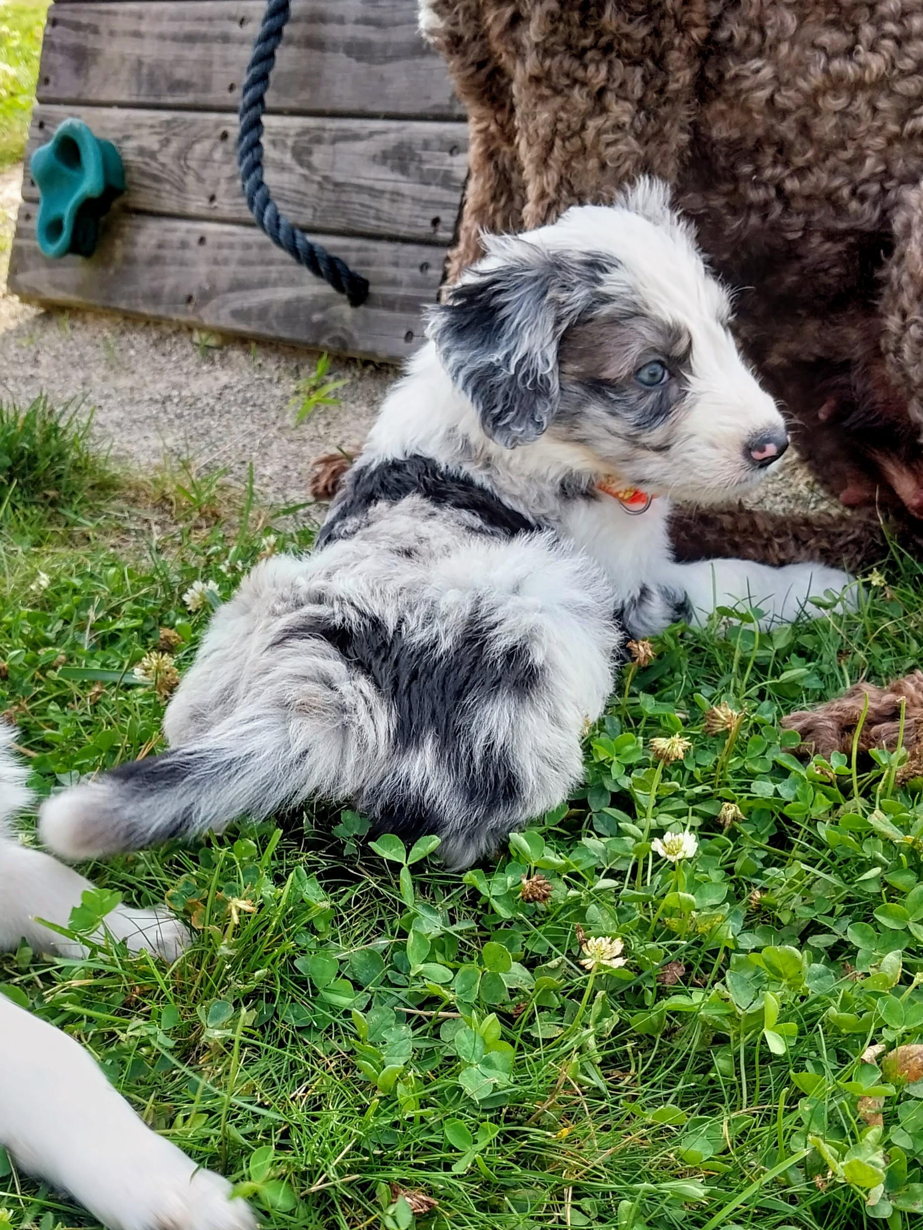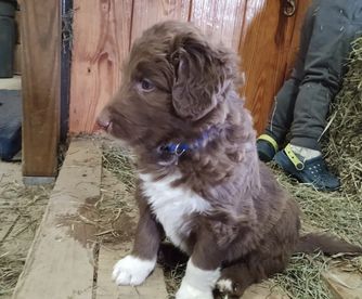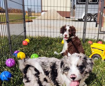 I'm Jennifer H., the breeder behind Brisby Bordoodles located in Fredericktown, OH. I can honestly say our dogs are happy, healthy, active farm dogs that live life to the fullest. It has been said that the physical and emotional health of the mother will affect the health of her puppies and I can assure you that our dogs are healthy and well loved! They have proven to us that Border Collies and Poodles are not only two of the smartest and most trainable dog breeds in the world, but also two of the most loving, affectionate and devoted! We have a gorgeous ABCA & AKC registered blue merle border collie (Blue) and three beautiful AKC registered standard poodle girls (Cali, Gina & Lyla). All parents are Genetic health tested through Paw Print and Gensol. My puppies are my passion and I can not wait to share our Brisby Bordoodles with the world! Puppies will come to you with ENS (Early Neurological Stimulation), early socialization with children, adults and elderly, crate trained, basic commands, beginning potty training, vet check, first set of vaccinations and a Brisby Bordoodle take home package and pedigree.