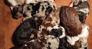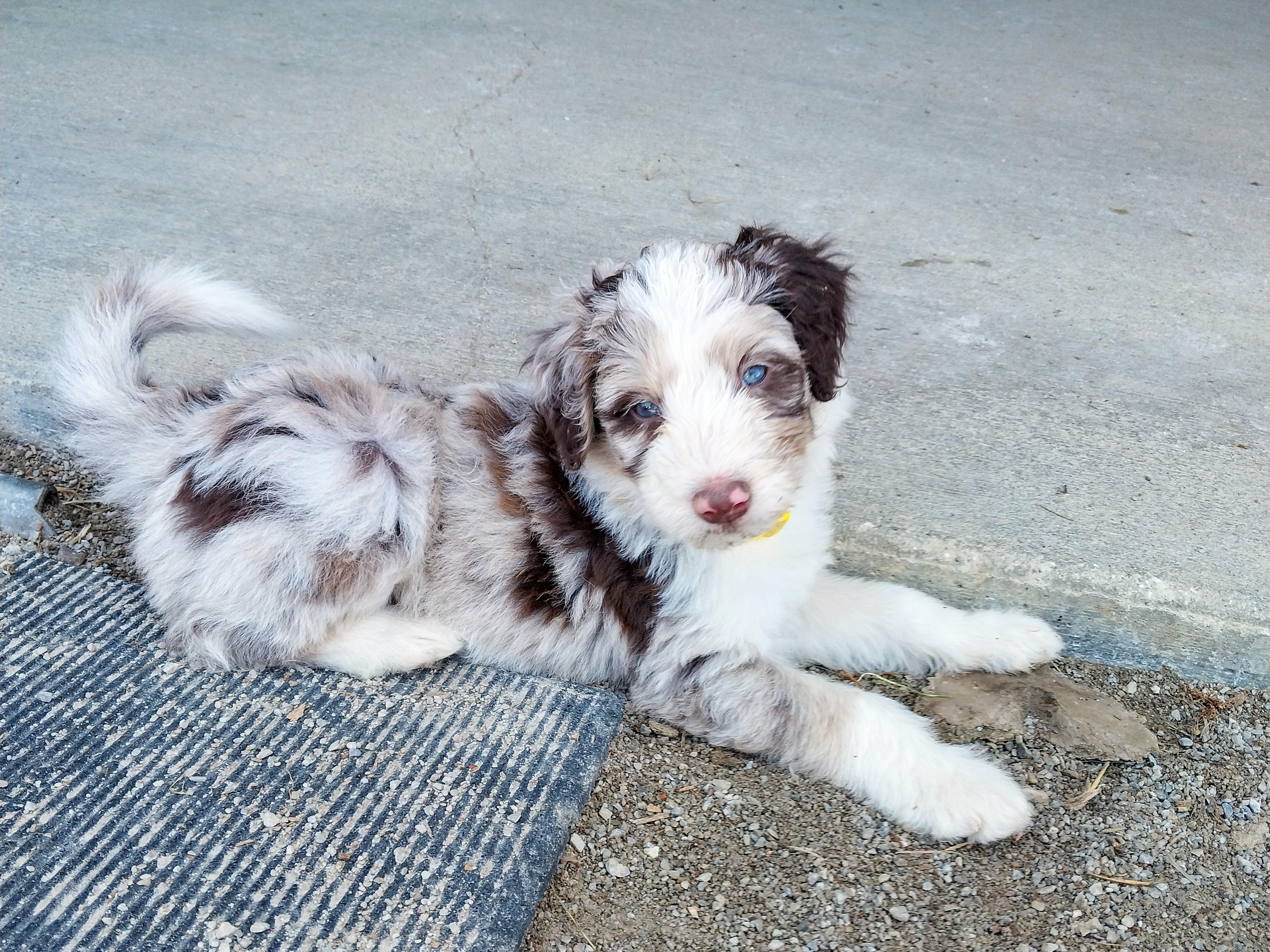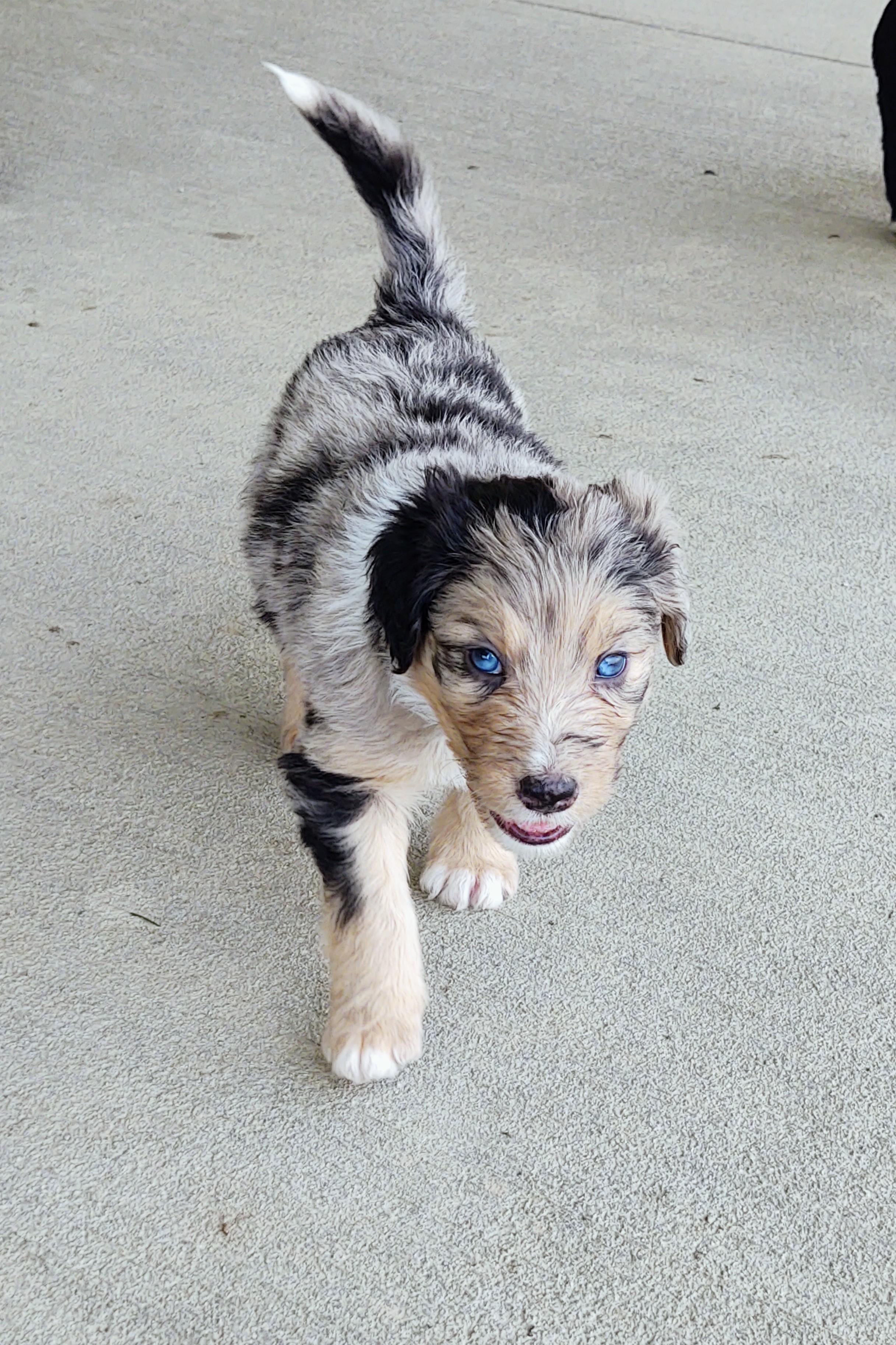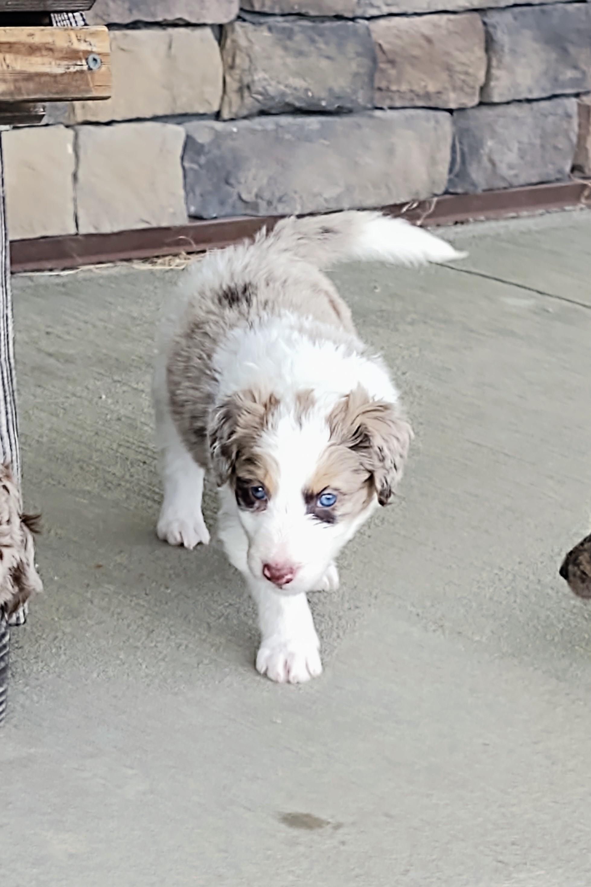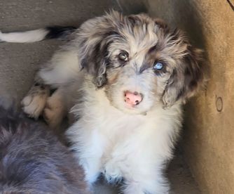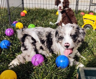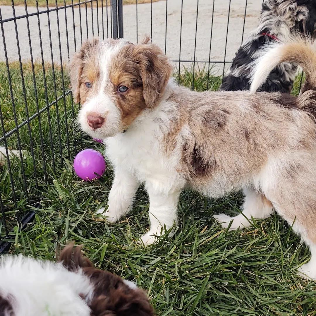Our puppies include lilac, black, white and blue merle, white and black, red merle, and blue merle. Colors will vary depending on the parent dogs.