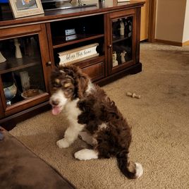 " I am extremely happy with the Brisby Bordoodles family! I say family because Jennifer is truly fantastic in the whole process and after. This was my first ever raising a puppy. I received my puppy Charlie at 8 weeks already potty trained, crate trained, and basic commands like sit! Charlie is such a loving, curious, and energetic dog. He is really smart and always wagging his tail. He is popular everywhere and received the best positive compliments whether it's walking down the street, eating at a restaurant, or the dog park ! Jennifer is always available for questions and check-ups on how the puppy is doing. Charlie is coming up turning 2 years old and we love being part of the Brisby Bordoodle family! She does such a great job with early socialization, desensitization, and basic training. I am definitely thinking about adding another Brisby Bordoodle pup to my family!! Highly recommend Jeniffer. Dont miss out, you will not be disappointed!!!😀 "