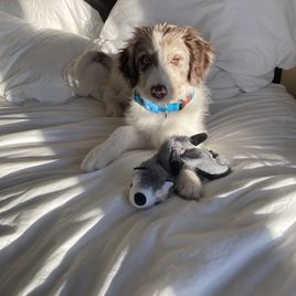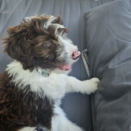 After extensive research, I chose to get a dog from Jen, and I couldn’t be happier with the decision. What stood out most was Jen's transparency about the puppies’ mom and her genuine passion for what she does. This isn’t a business for her; it’s a labor of love. Thanks to her dedication, Aurora is a happy, well-behaved puppy. Aurora took to crate training seamlessly—she whines for no more than a minute before calming down. She already responds to her name, sits on command, and as long as Arpan and I take her out regularly, she’s accident-free. Aurora is incredible with people of all ages, from adults to toddlers. She doesn’t jump on anyone or bark; the most she’ll do is whine softly for attention. She’s also wonderful with other dogs, playing enthusiastically but knowing when it’s time to rest. Aurora is truly the dream puppy. Jen, as a breeder, is equally exceptional. She answers all our questions and even provides recommendations for Aurora’s favorite treats. Beyond that, she fosters a real sense of community among dog owners. She stays in touch with everyone who adopts one of her puppies and organizes fun events like a holiday-themed photo contest, which had participation from about 50 Brisby Bordoodle owners. Adopting a Brisby Bordoodle is more than bringing home a dog—it’s joining a supportive and connected community Jen has created. We’re so grateful for her. Aurora has brought us so much joy that Arpan and I are already talking about adopting a second dog from Jen so Aurora can have a sibling.