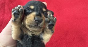 I have one male and two female breeding dogs, so I breed on a very small scale. All of my dogs live in my home and are endlessly spoiled. I breed specifically for good temperament and healthy puppies—not color, and my prices do not vary by sex of puppy, which is very few and far between in the doxie world.