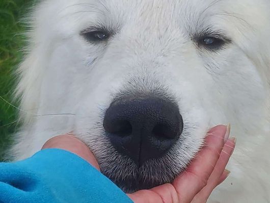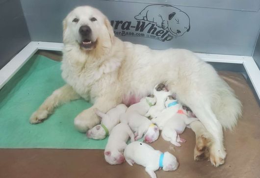 Niamh (Neev) is a female Great Pyrenees. Carefully selected as a great representative of her breed, Kim decided to make her part of their program. Kim has passed Good Dog’s screening process, which involved a review of their breeding practices, environment, and the mental and physical health of their dogs.