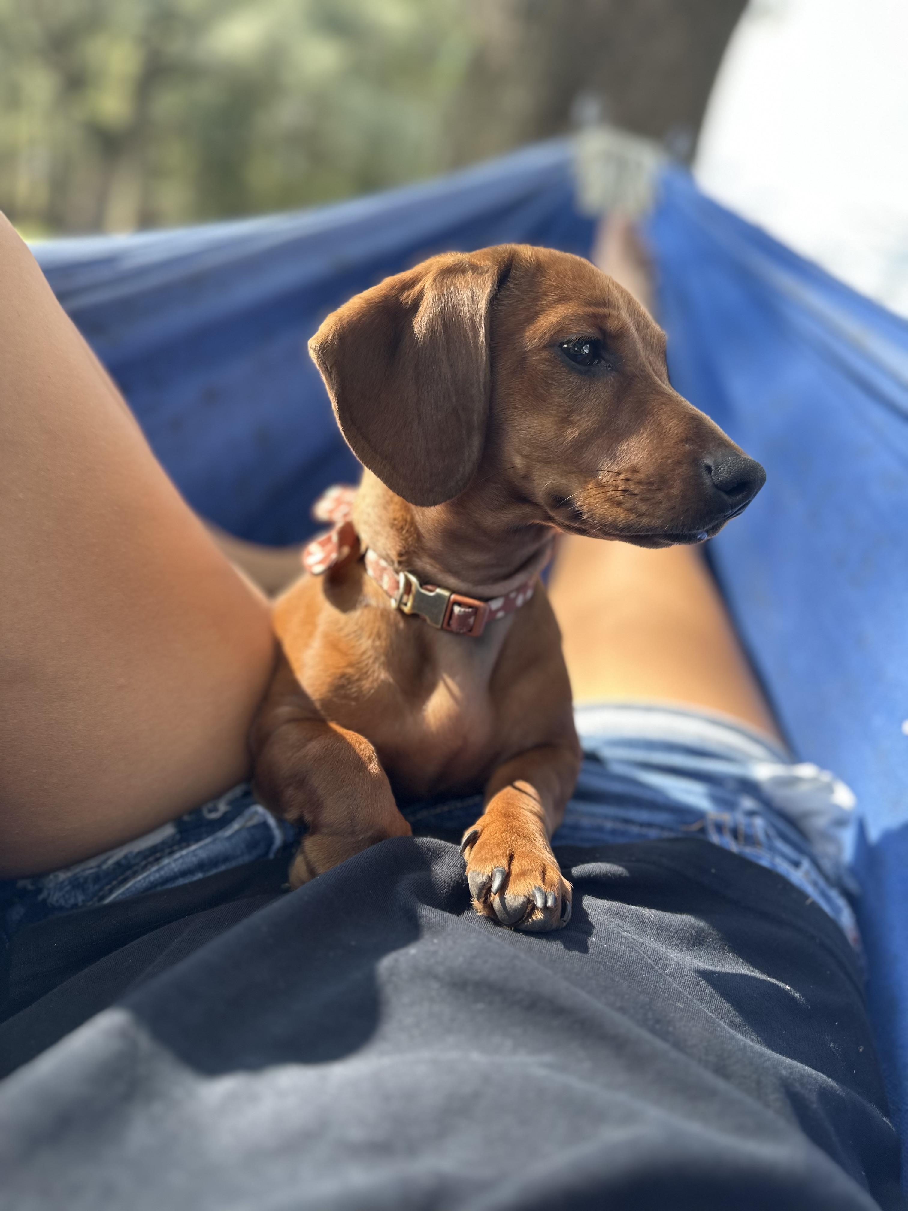 Hattie is a female Dachshund. Carefully selected as a great representative of her breed, Brittany decided to make her part of their program. Brittany has passed Good Dog’s screening process, which involved a review of their breeding practices, environment, and the mental and physical health of their dogs.