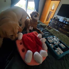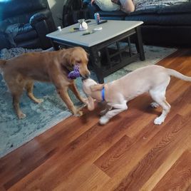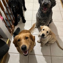 Britt was very responsive and flexible! You can tell these dogs are bred in a loving home. Our puppy, Moose (aka green), has been the best addition to our family. He listens very well, loves snuggles with anyone (cats and dogs included), and is an excellent playmate for his older sister. It was worth the 6 hour drive for us to take home this adorable puppy who has felt like he's belonged since minute 1.