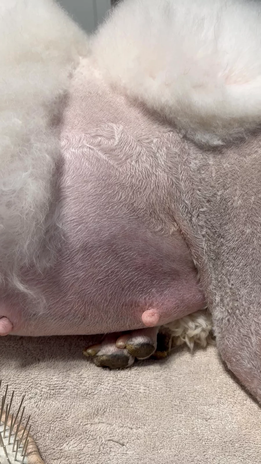 Update on Mia… For those of you following along, Mia came into season a couple of weeks ago. We were planning to breed her to a lovely boy named Tonic in the United Kingdom using frozen semen. Unfortunately, the shipment has been stuck in Memphis customs for over two weeks now. Despite multiple calls from both vets and myself, we got nowhere until earlier this week when FedEx finally informed us that a USDA form was “missing.” (It was originally submitted, so who knows what happened.) The vet resent the paperwork right away, and I was able to speak with the agent assigned to our case. She’s hopeful the shipment will be released and delivered in the next few days. But, we’re cutting it close, though, as the shipping tank is rated for 21 days and we’re now on day 17. Meanwhile, Mia’s progesterone timing lined up perfectly for a Thanksgiving insemination—my amazing vet was even willing to come in that morning to do the procedure. But with no semen in hand, we couldn’t move forward. I had resigned myself to skipping this cycle until I talked with my friend and handler, Kelly. She mentioned she had a few boys available, including Gianni—a gorgeous dog I remembered from the show ring years ago, back when Mia’s mom was showing. After talking it through, we went ahead, and Mia was successfully bred to him last week. Now we wait for her ultrasound on New Year’s Eve to confirm if the breeding took. I’m disappointed things didn’t work out with Tonic this time, but I’m genuinely excited about the possibility of a Gianni x Mia litter. And I’m still hopeful the shipment will arrive soon and remain viable so we can use it next cycle. Fingers crossed this rollercoaster finally smooths out. If Mia is pregnant, we expect a litter of all cream/white puppies due at the end of January.❤️