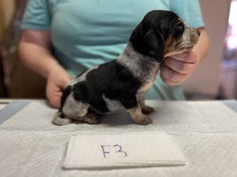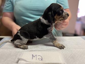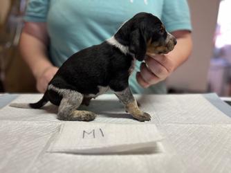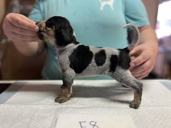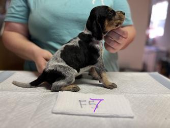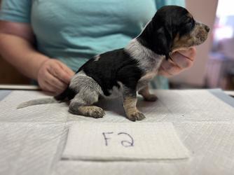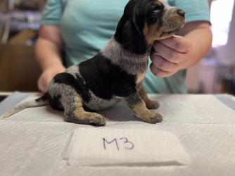 Our puppies include blue ticked and blue ticked and tan. Colors will vary depending on the parent dogs.