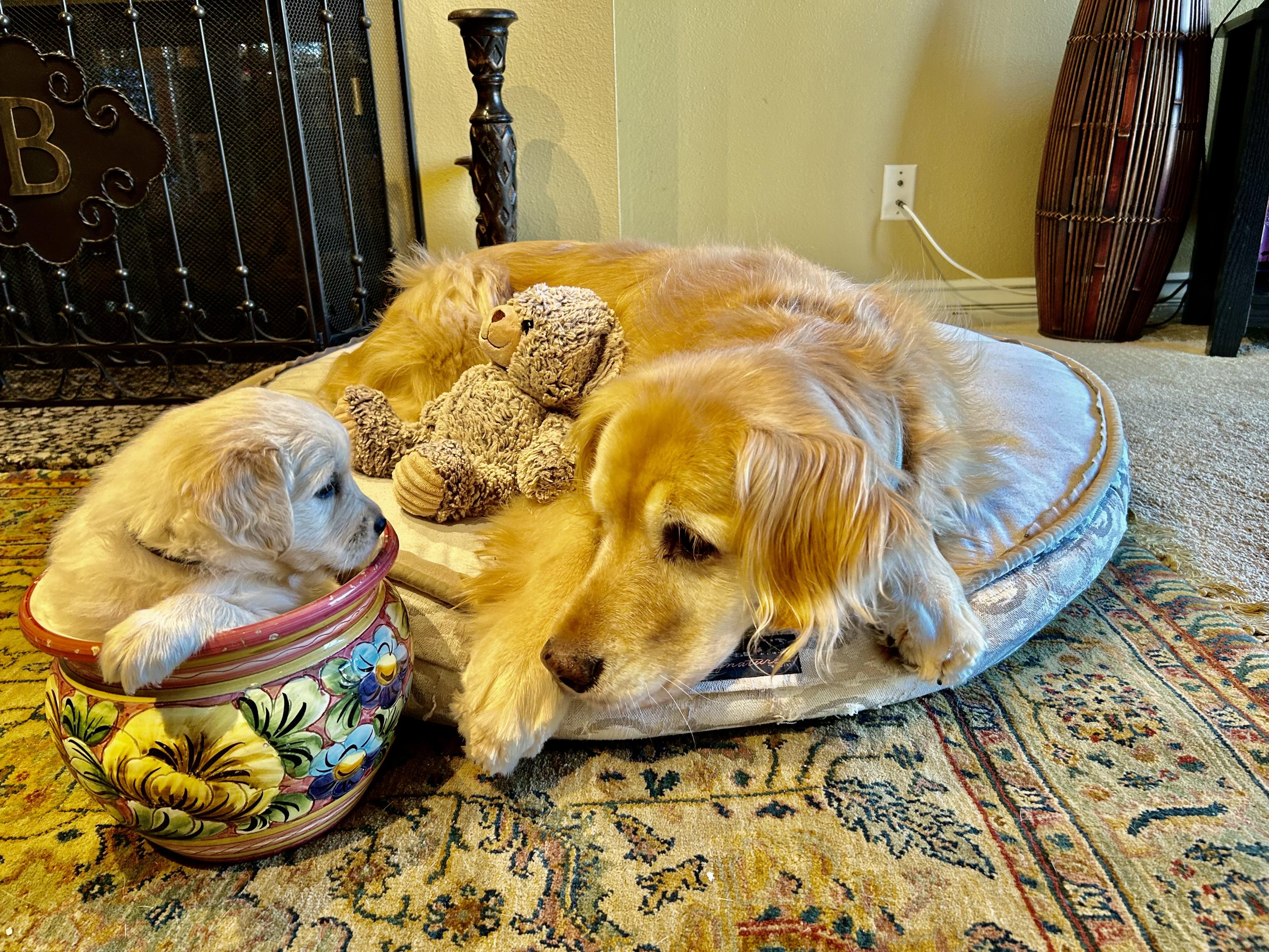 Sasha is a female Golden Retriever. Carefully selected as a great representative of her breed, Steve decided to make her part of their program. Steve has passed Good Dog’s screening process, which involved a review of their breeding practices, environment, and the mental and physical health of their dogs.