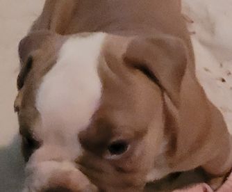 Tia Marie is a female Olde English Bulldogge. Carefully selected as a great representative of her breed, Tina decided to make her part of their program. Tina has passed Good Dog’s screening process, which involved a review of their breeding practices, environment, and the mental and physical health of their dogs.