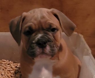 Winston is a male Olde English Bulldogge. Carefully selected as a great representative of his breed, Tina decided to make him part of their program. Tina has passed Good Dog’s screening process, which involved a review of their breeding practices, environment, and the mental and physical health of their dogs.