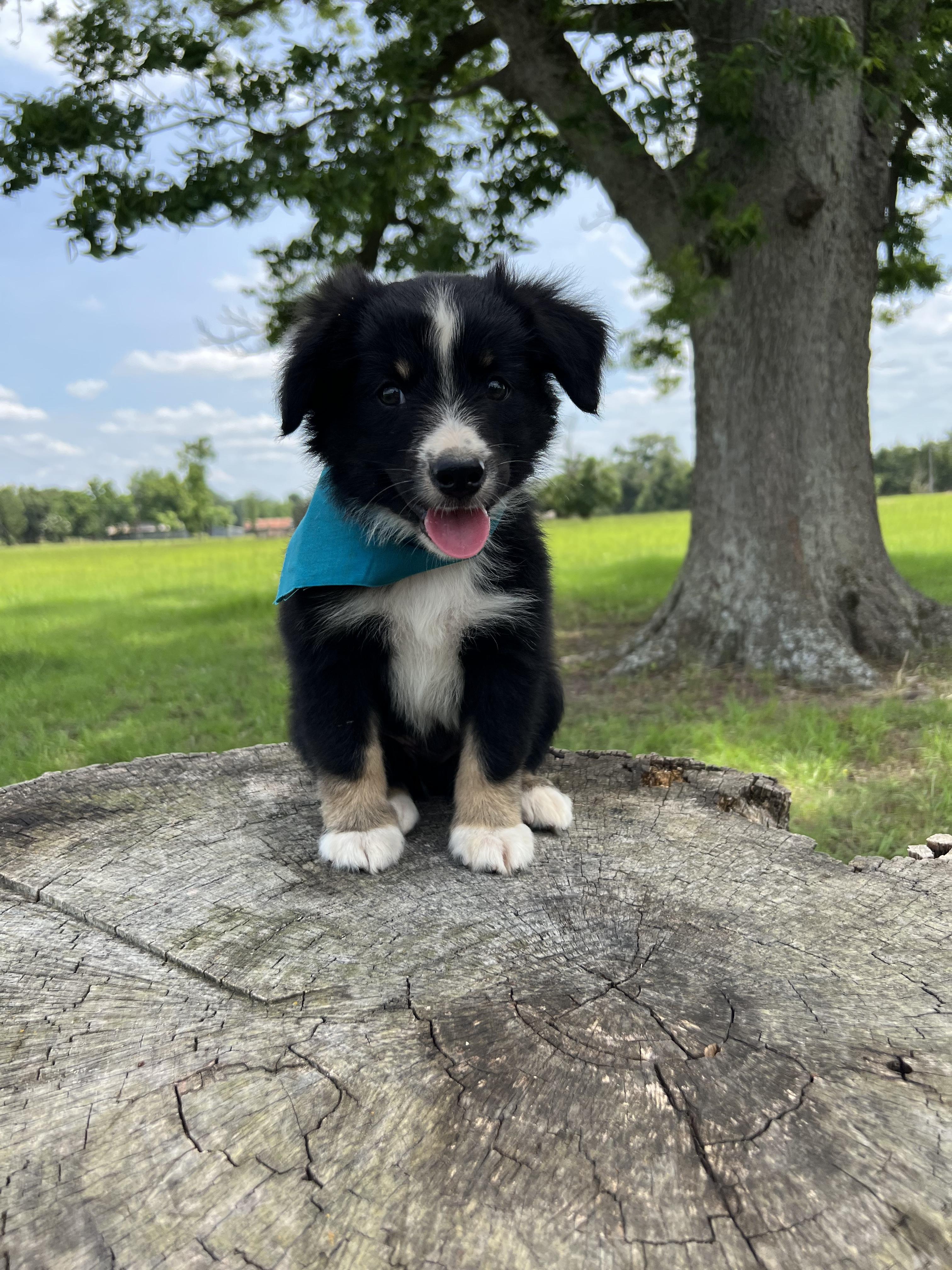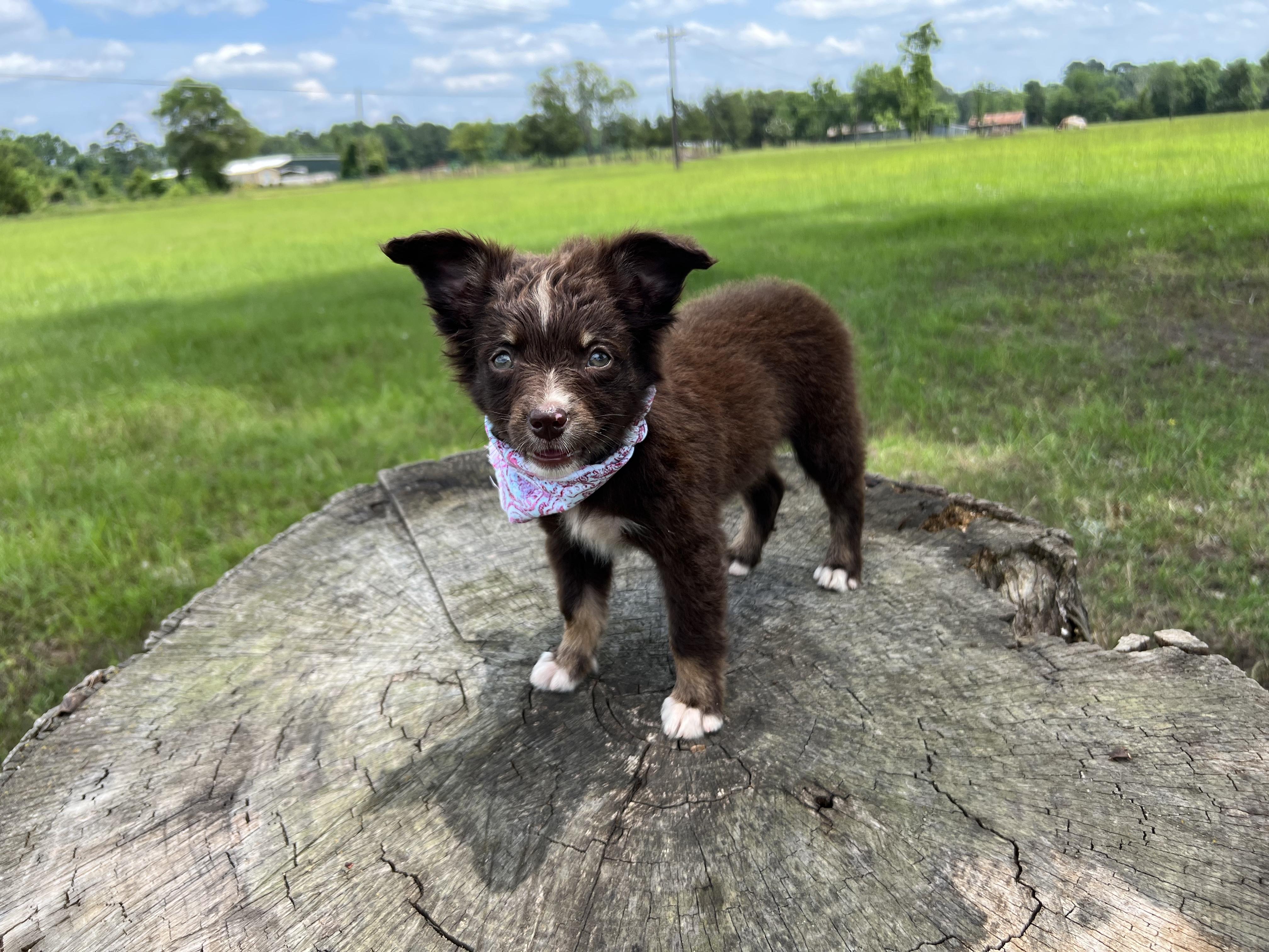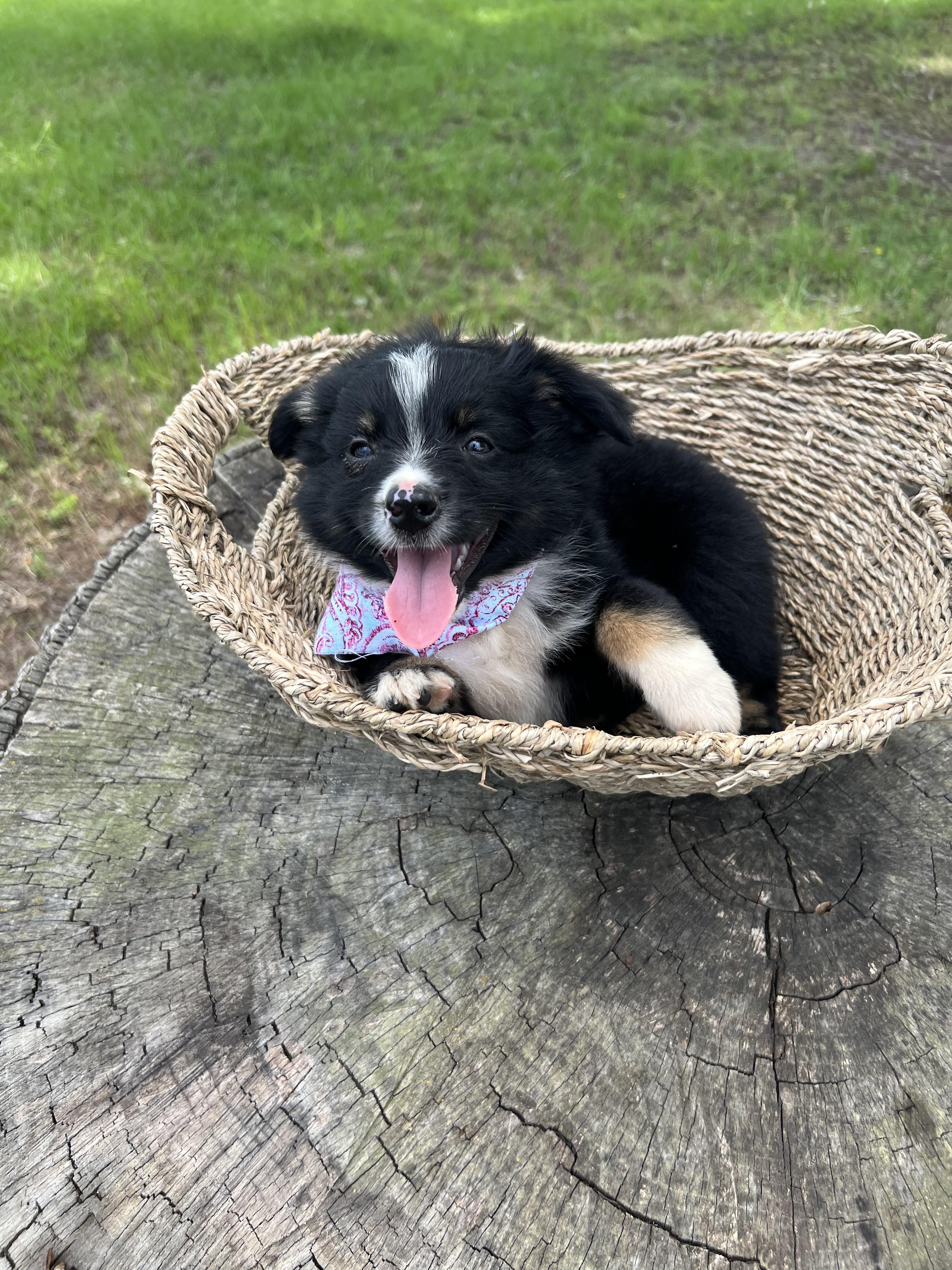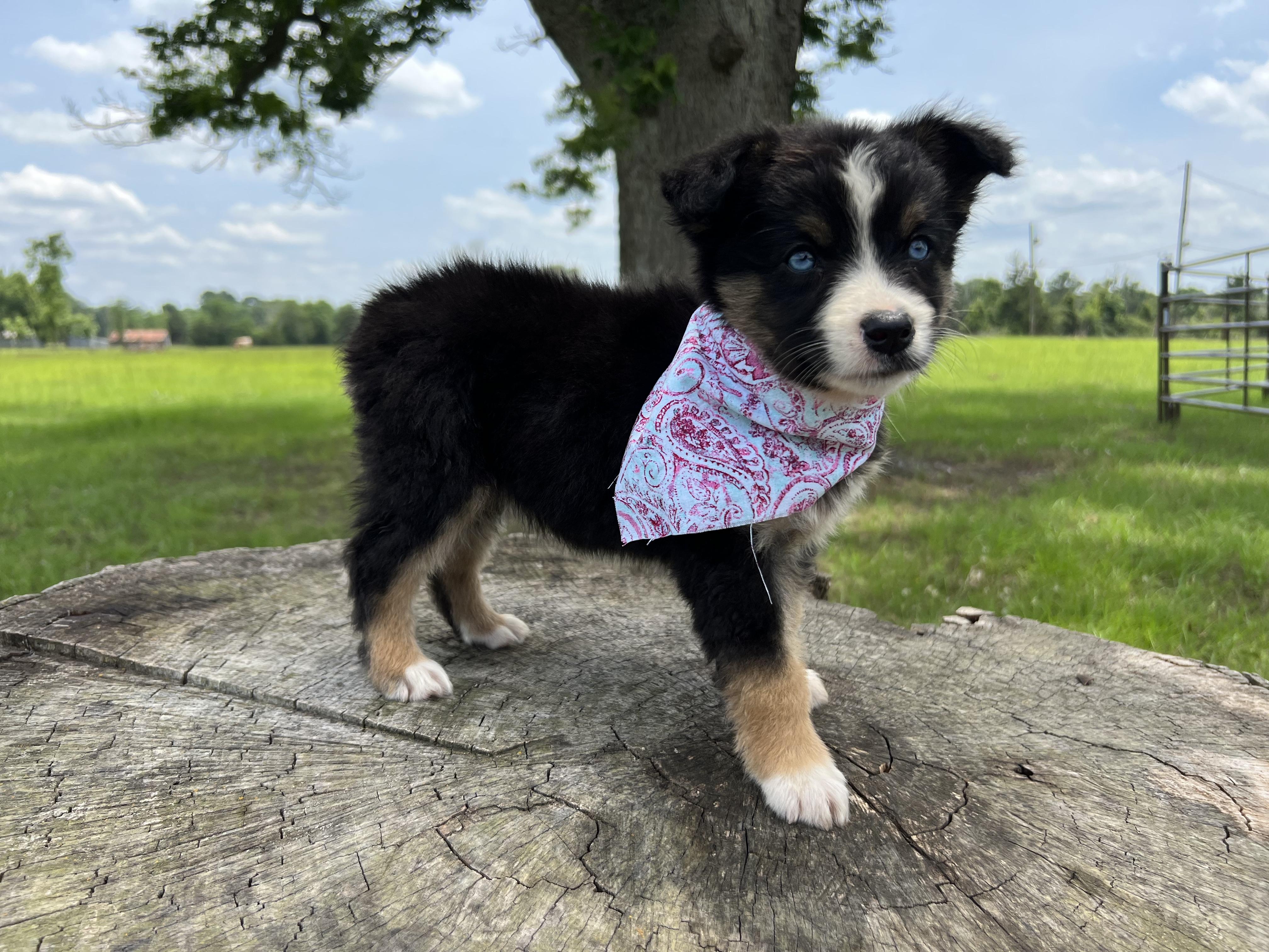 Our puppies include red tri-color, black tri, red merle, and blue merle. Colors will vary depending on the parent dogs.