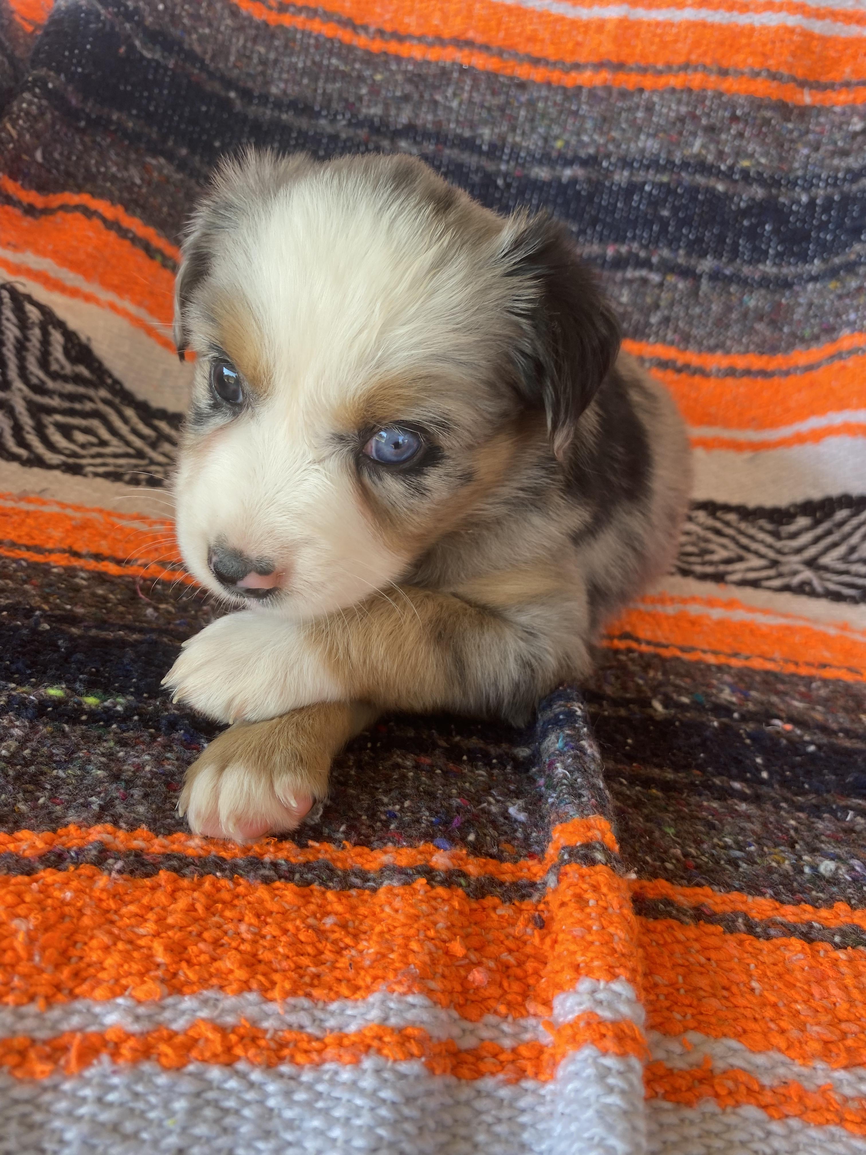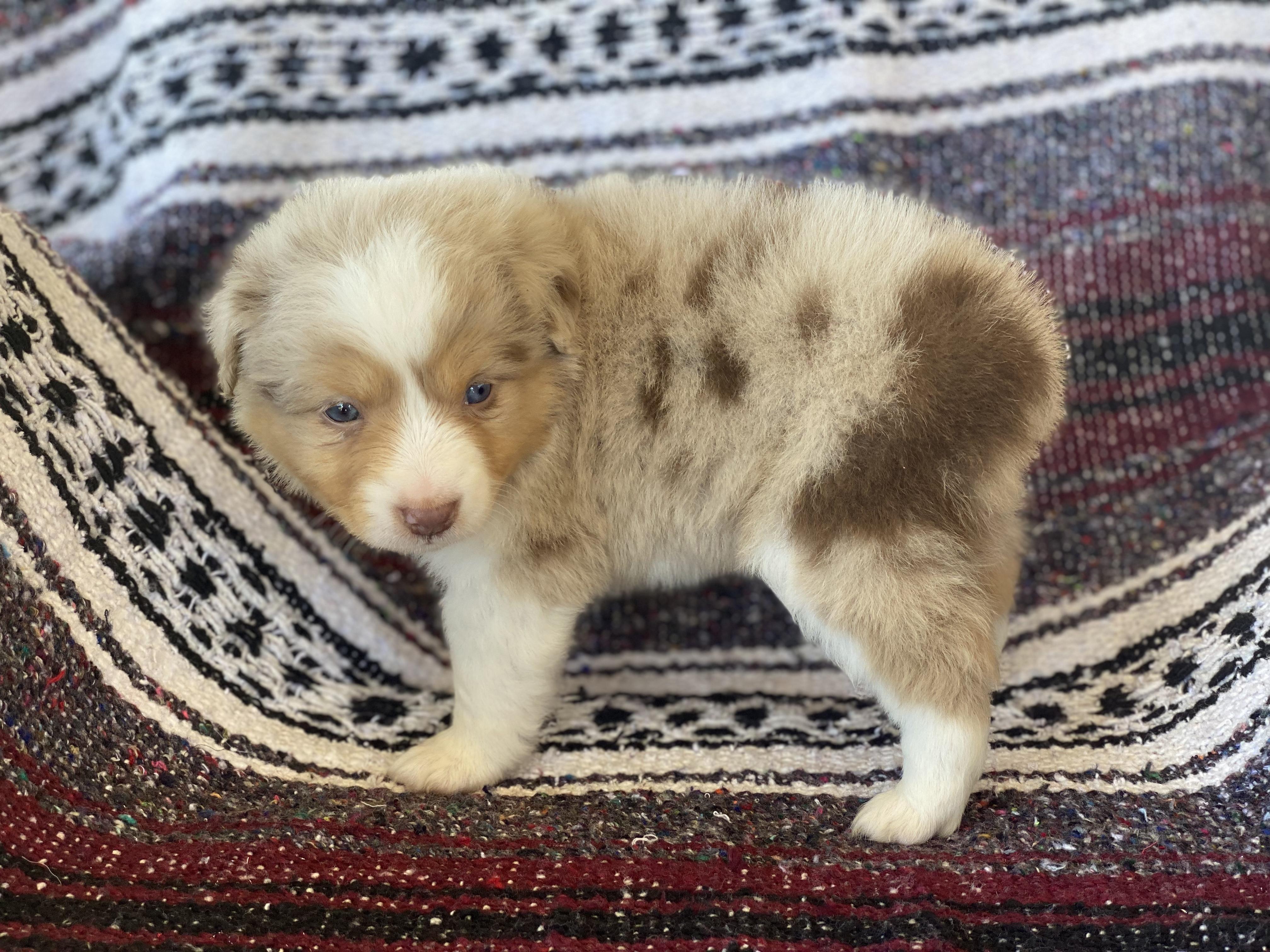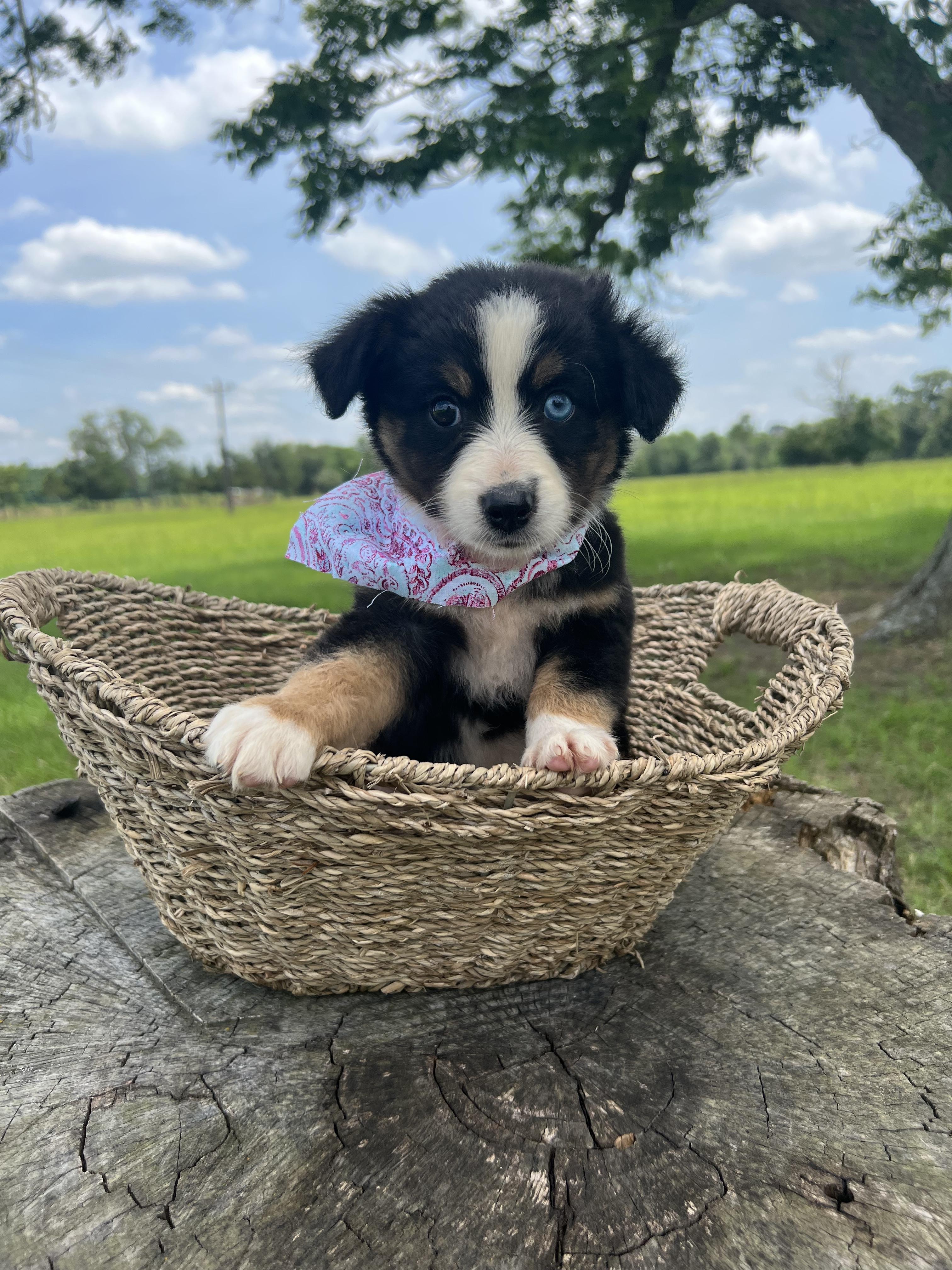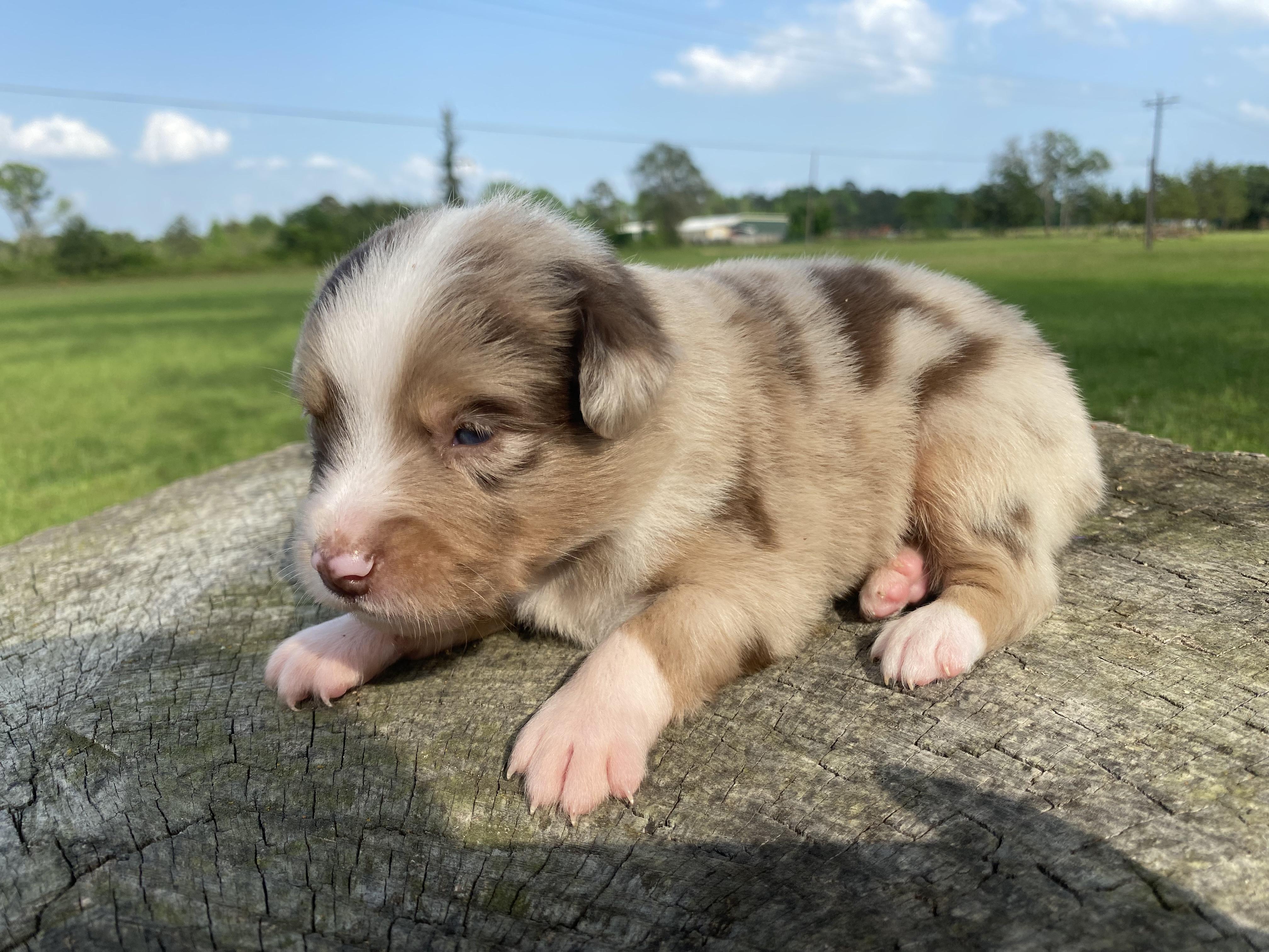 Our puppies include red tri-color, black tri, red merle, and blue merle. Colors will vary depending on the parent dogs.
