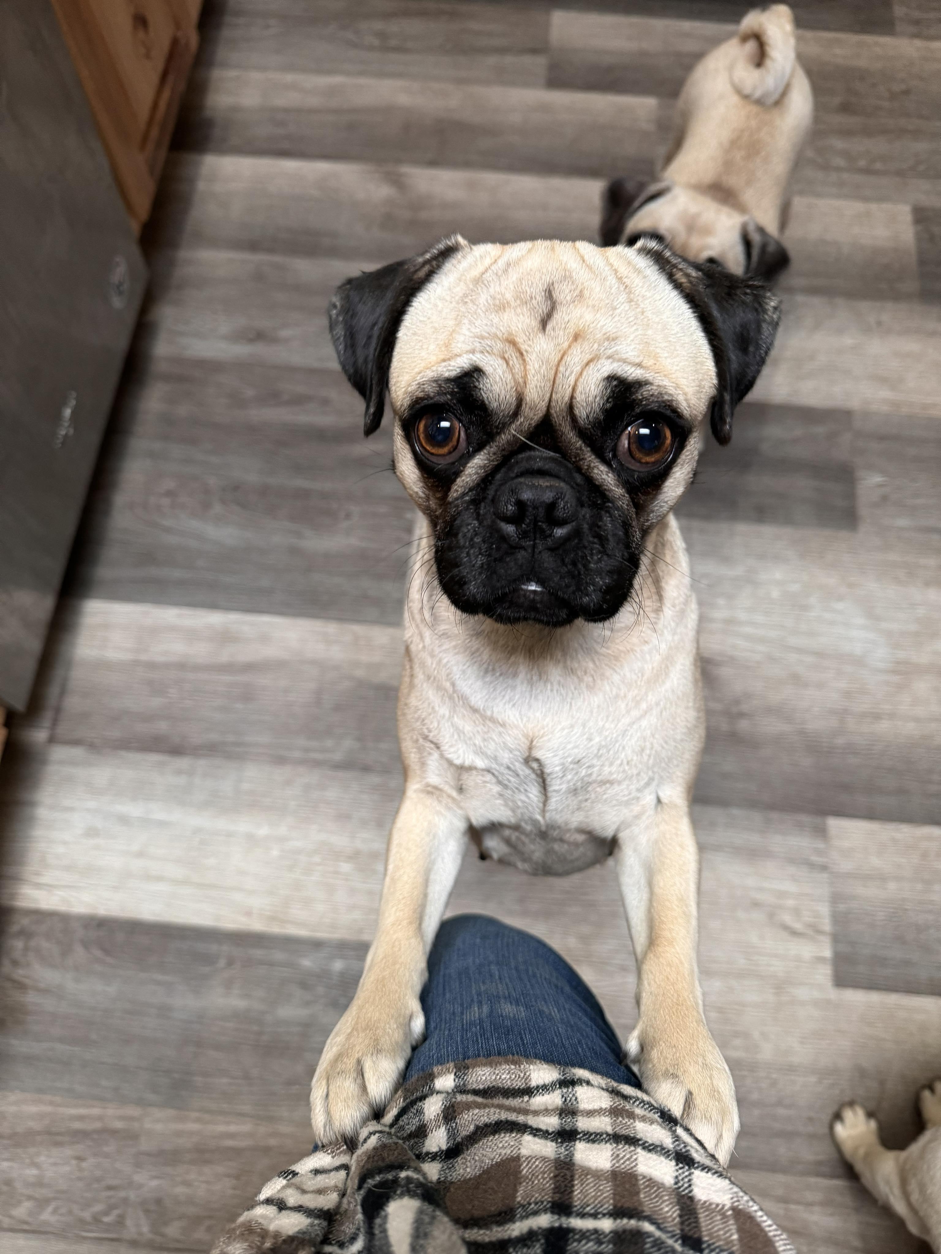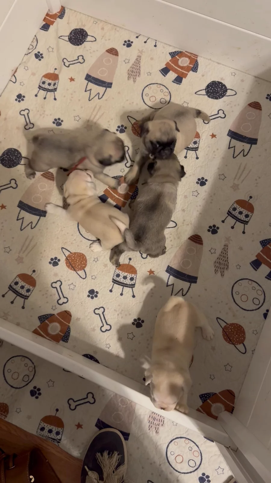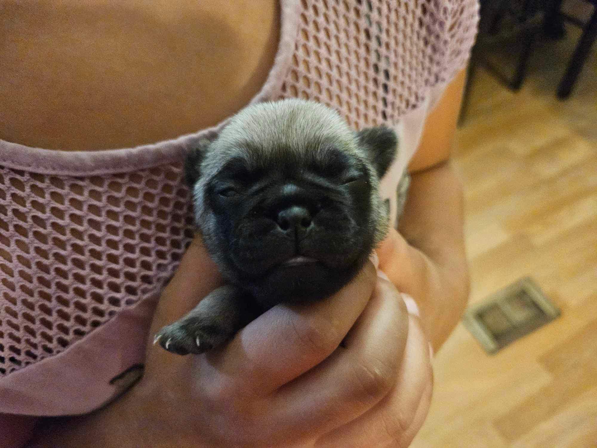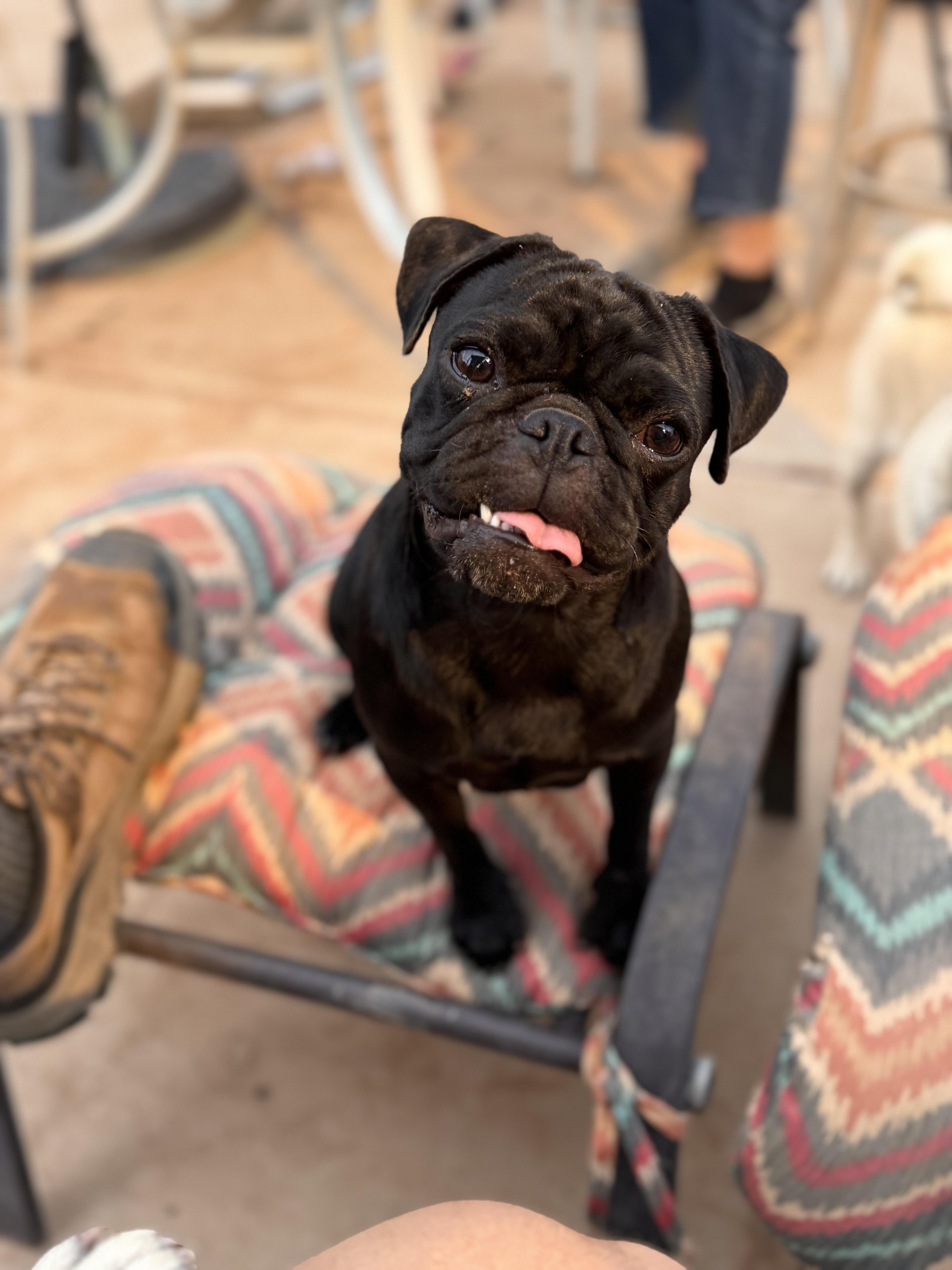 A troublemaker 😍. Our friends, pug and cane corso breeders, traded my Photography and Marketing services for our first pug Theodore. We fell in love. They asked if we would want to work together as breeders. We started with our beautiful Liza having her retirement litter. I was hooked and in love with the process from delivery to home placement. There is nothing like it or owning a pug!