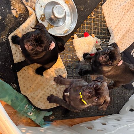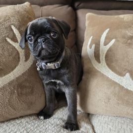 We are so fortunate to have found our next family member. Natasha was great to provide updates each week and answered all questions I had. This is our first pug, and we are truly blessed to have such a great dog join our family. Natasha uses a litter box and Natures Miracle pee spray. This made potty training go amazing for us, as we got a grass turf for our apartment patio, used the pee spray and our boy knew where to potty immediately. Goodog was such a useful tool in getting us connected with a breeder.