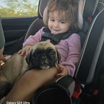I was beyond happy with the whole experience in adopting our new family member (Mia Rose) from Natasha from the Broken Road Ranch Pugs. There was always clear line of communication, updates on the puppies and, she even took the time to send me pictures of our puppy as she was growing and getting bigger. And when we went to pick her up, Natasha met us right at the airport with Mia. Our puppy has been nothing short of a true blessing, she is healthy, happy and incredibly smart! I honestly don't have 1 negative thing to say about the adoption process, Natasha's "breeding process" or "customer service ", and definitely nothing negative about our beautiful puppy! I would in a heartbeat, adopt from Broken Road Ranch Pugs (Natasha RatchFord) again! A big thank you to Natasha for everything you do in finding these puppies a good home, but a even bigger thank you for the beautiful little puppy (Mia Rose) that we adopted, she is truly a blessing, we can't wait to spoil, and love her for many years to come!