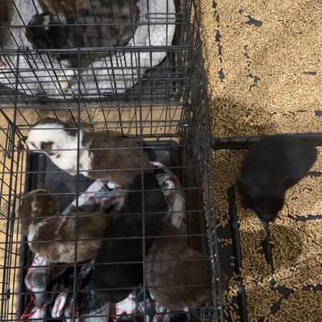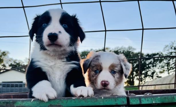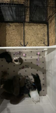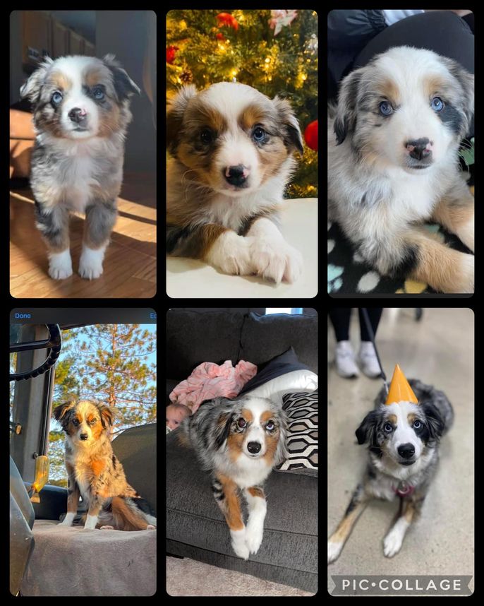 Our puppies include blue merle, black tri, and black. Colors will vary depending on the parent dogs.