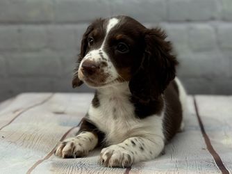 Our puppies include piebald, chocolate and tan, chocolate and cream, black and tan, black and cream, and dapple. Colors will vary depending on the parent dogs.