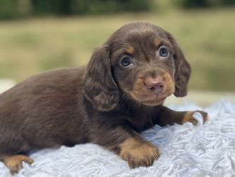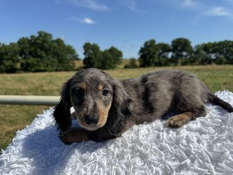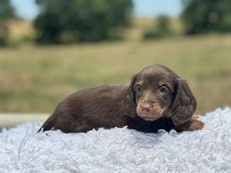 I'm Brooke C., the breeder behind Brooke Crenshaw located in Colbert, OK. My dogs are my love and my passion. Dachshunds are the most amazing breed I’ve ever encountered. Their love and loyalty is like no other. I have beed breeding dachshunds for five years. They are raised in my home on a 400 acre ranch. I keep pristine records of their vaccination and deworming. I vaccinate at 6, 8 and 10 weeks and their deworming begins at two weeks of age. All puppies will have a vet visit before finding their new homes. They also come with a one year health guarantee. The health and wellness of our dogs and puppies are priority. Our females are health tested to assure the best quality of their health and the quality of their puppies.