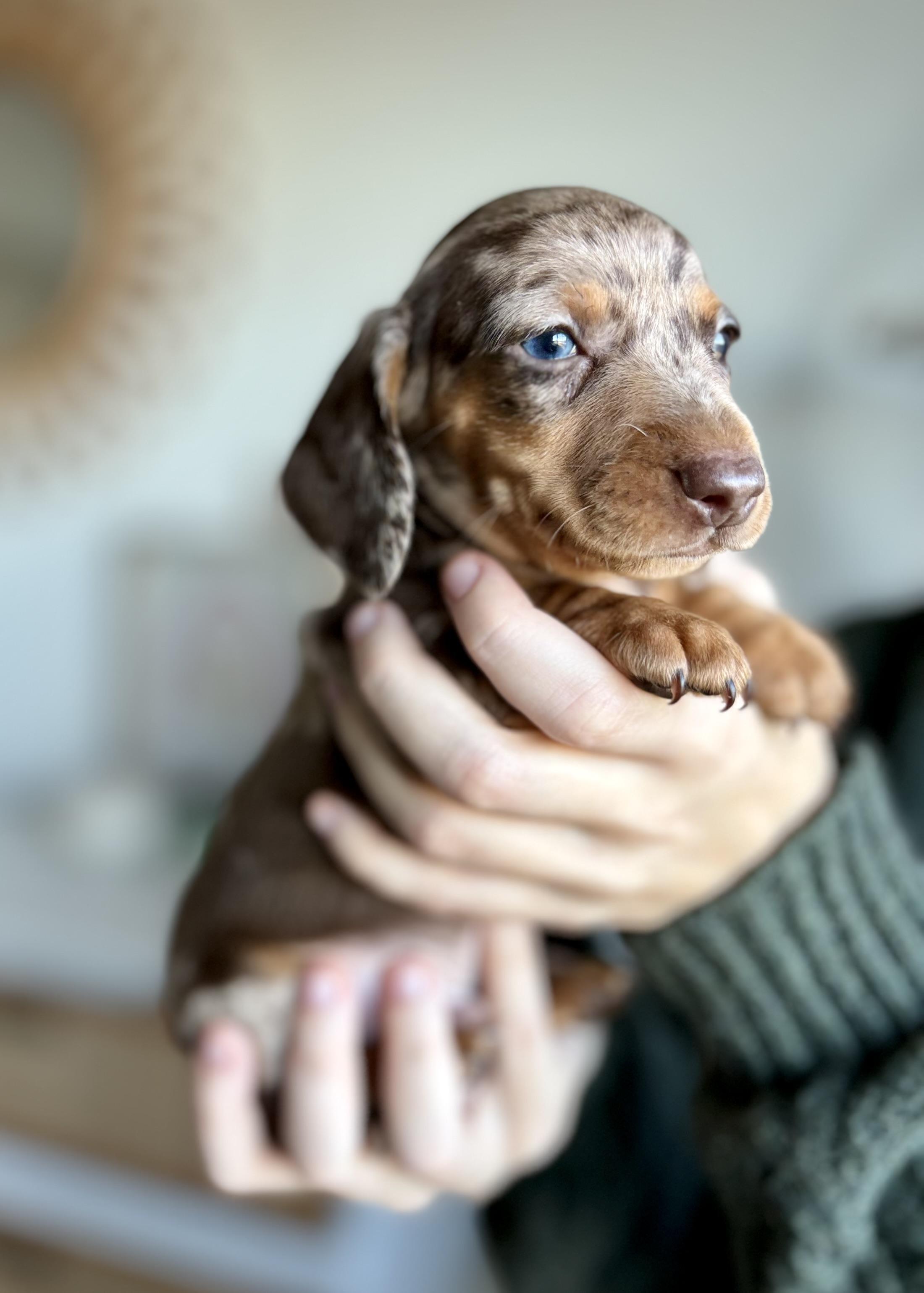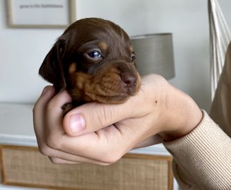 She was amazing!! My entire life, I dreamed of having a weenie!! I had been looking forever and the second I saw this guy I knew he was the one, Dannielle was so kind and knowledgeable through the whole experience (trust me I asked her every question you could imagine!! lol!) she gave me my perfect healthy baby boy and STILL checks in on him!! She truly cares about these babies and wants them to go to someone who loves them, that’s why I loved Dannielle and wouldn’t want a dog from anyone else!