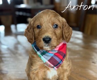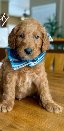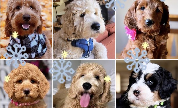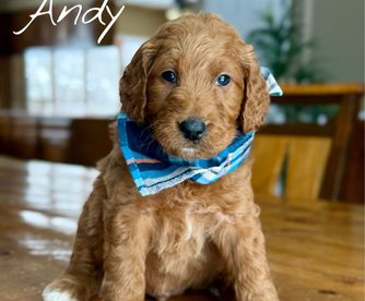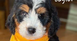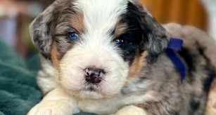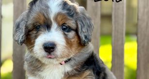 Our Bernedoodle puppies include tri-color and blue merle. Goldendoodle puppies include cream, red, and parti. Colors will vary depending on the parent dogs.