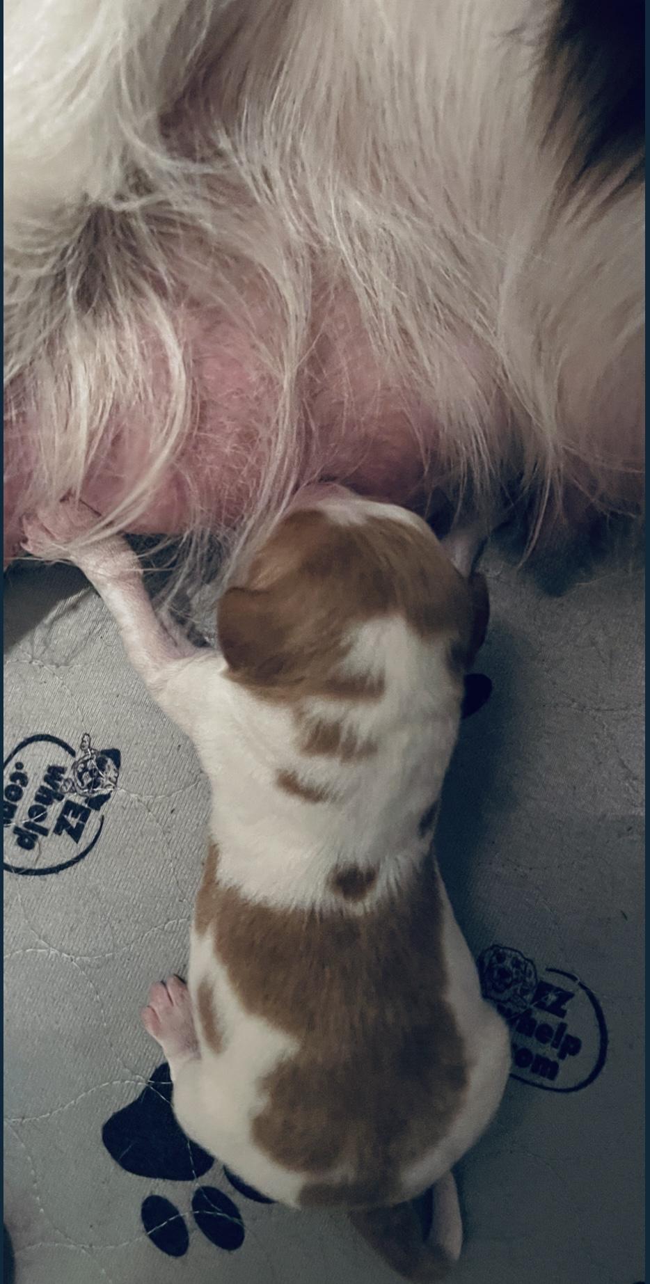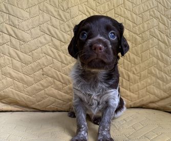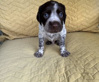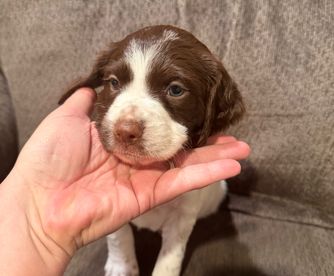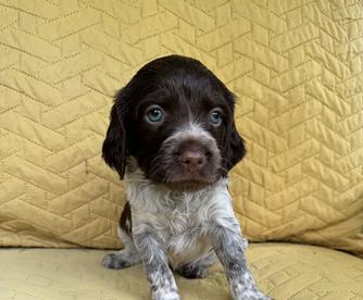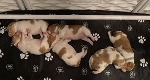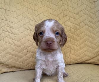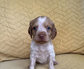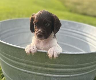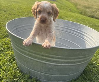Our puppies include liver roan, orange and white, orange roan, and liver and white. Colors will vary depending on the parent dogs.