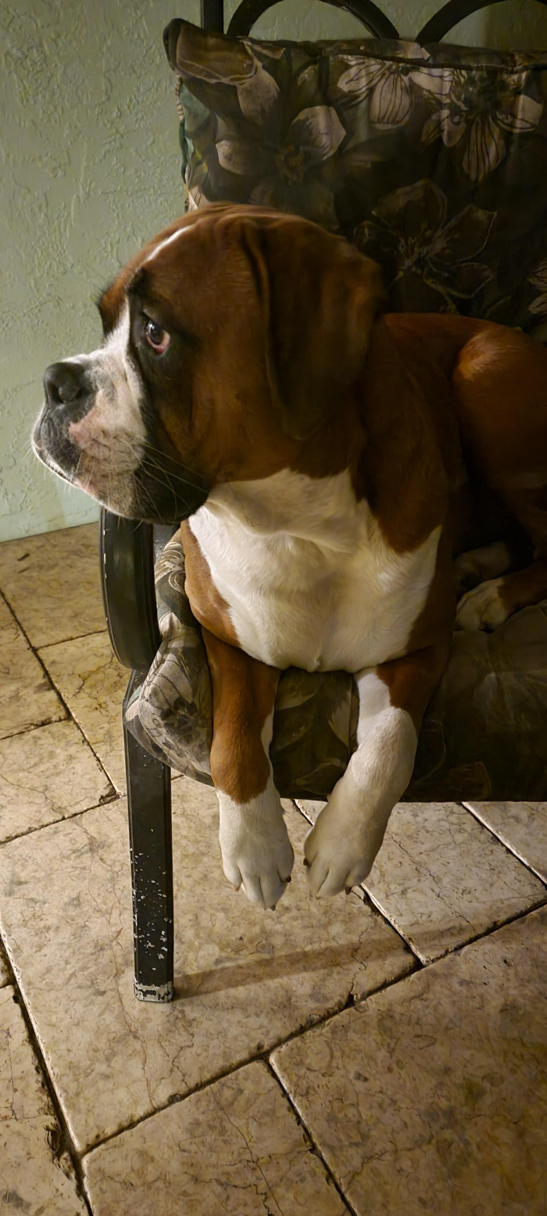 Zuri Mae is a female Boxer. Carefully selected as a great representative of her breed, Rob decided to make her part of their program. Rob has passed Good Dog’s screening process, which involved a review of their breeding practices, environment, and the mental and physical health of their dogs.