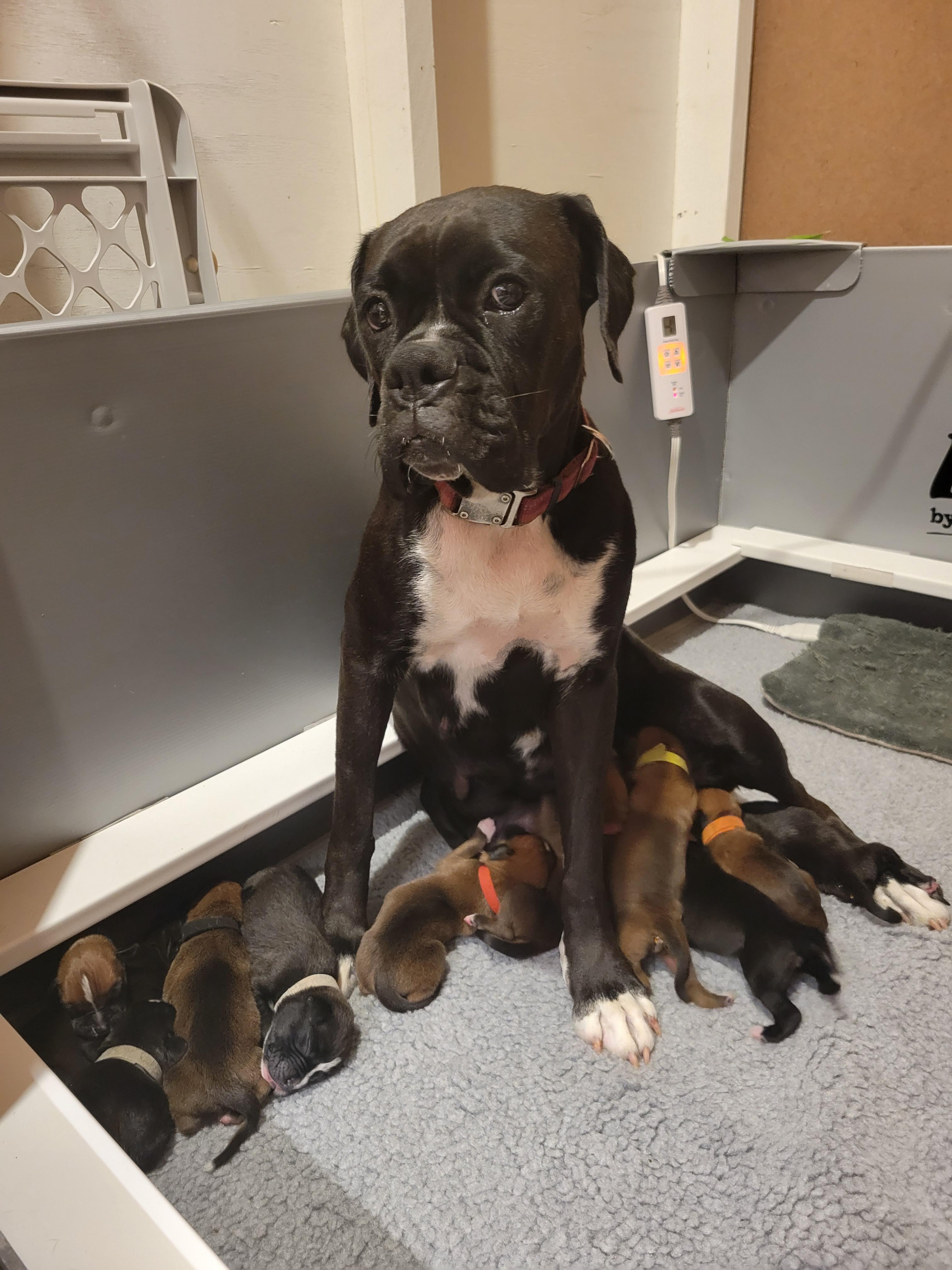 Bella is a female Boxer. Carefully selected as a great representative of her breed, Rob decided to make her part of their program. Rob has passed Good Dog’s screening process, which involved a review of their breeding practices, environment, and the mental and physical health of their dogs.