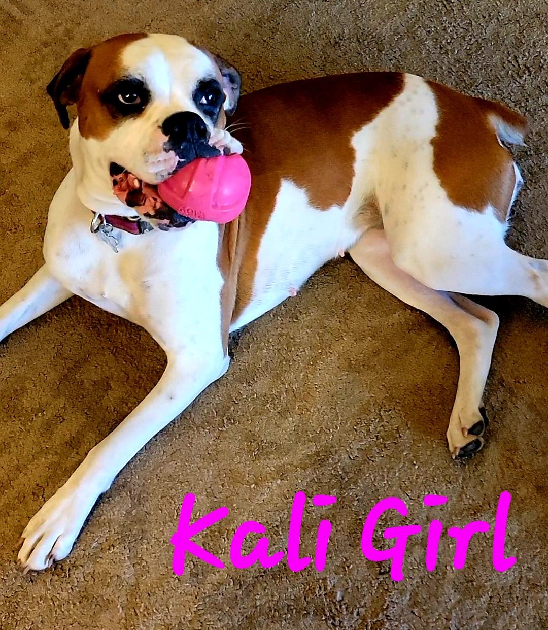 Kali is a female Boxer. Carefully selected as a great representative of her breed, Rob decided to make her part of their program. Rob has passed Good Dog’s screening process, which involved a review of their breeding practices, environment, and the mental and physical health of their dogs.