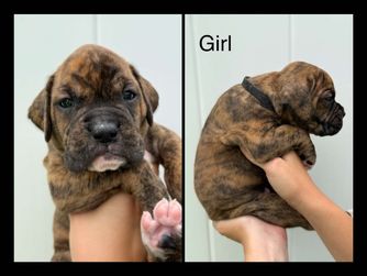 Our puppies include fawn and brindle. Colors will vary depending on the parent dogs.